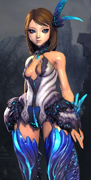 LynWW, hair ornament, 1girl, medium breasts, high heels, medium hair, outdoors, thighhighs, thigh boots, feather hair ornament, bare shoulders, brown hair, braid, head wings, feathers, very short dress, blue panties, underwear, blue ring, backless outfit, jewelry, center opening, spiral eyes, blue eyes, neon trim, 2 feather tails, 2 long tails, 2 long wing tails, wide hips, thick thighs, ass, garter straps, winged cuff on arms, wing bracelets, black tattoo under eye, heart tattoo under eye, face tattoo,chinese calligraphy tattoo on face,