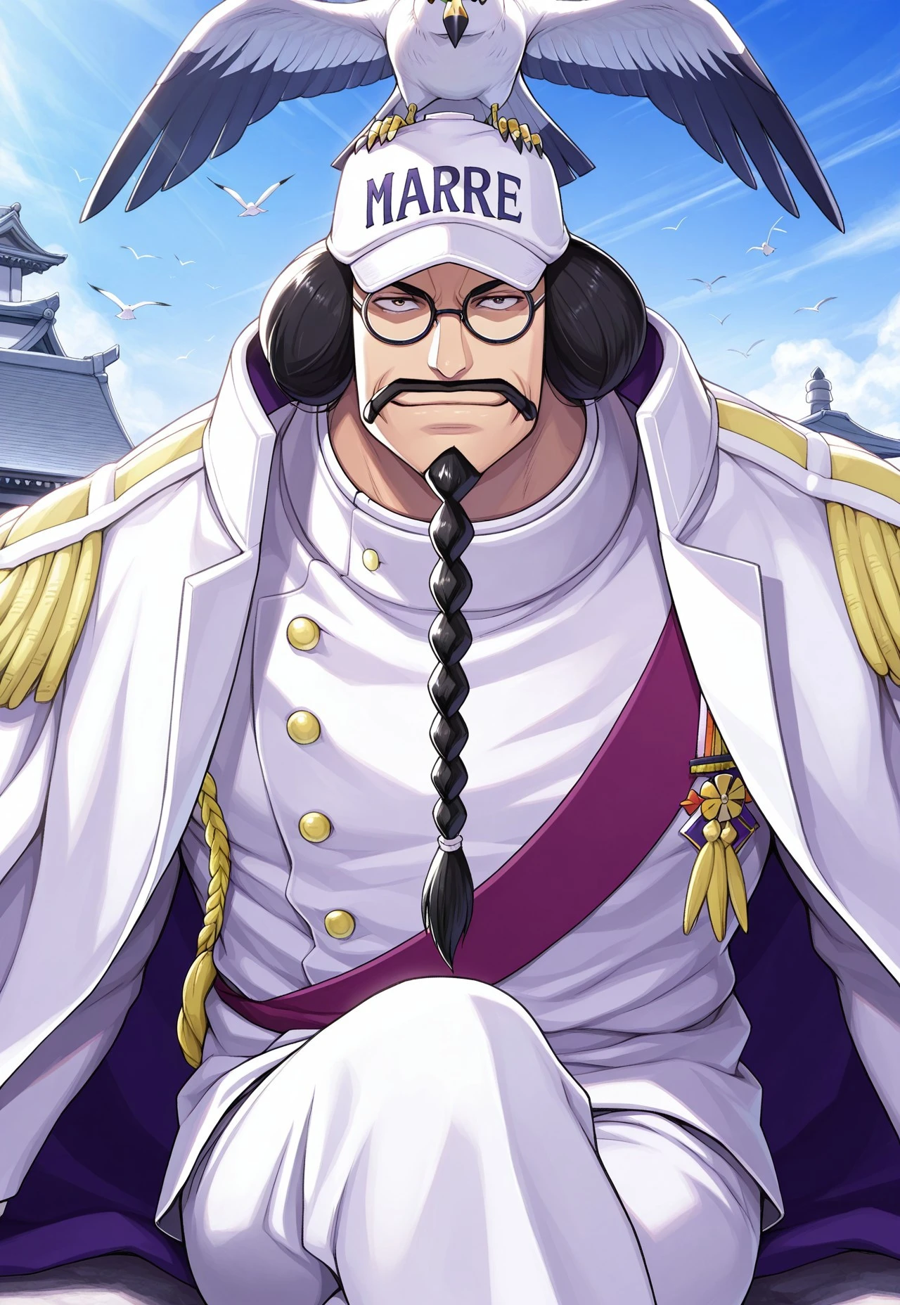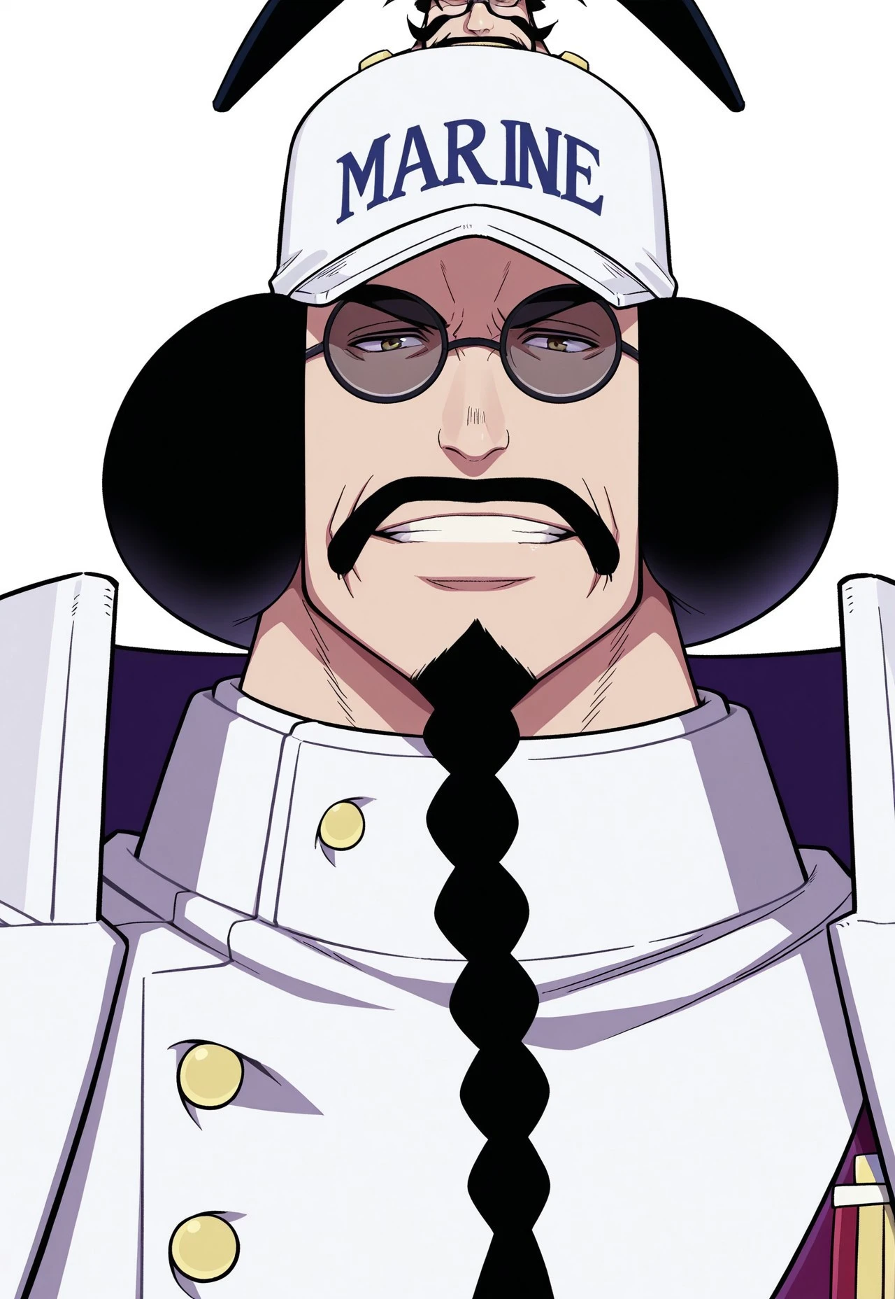 OPSengoku, black hair, mustache, braided beard, glasses, hat, white uniform