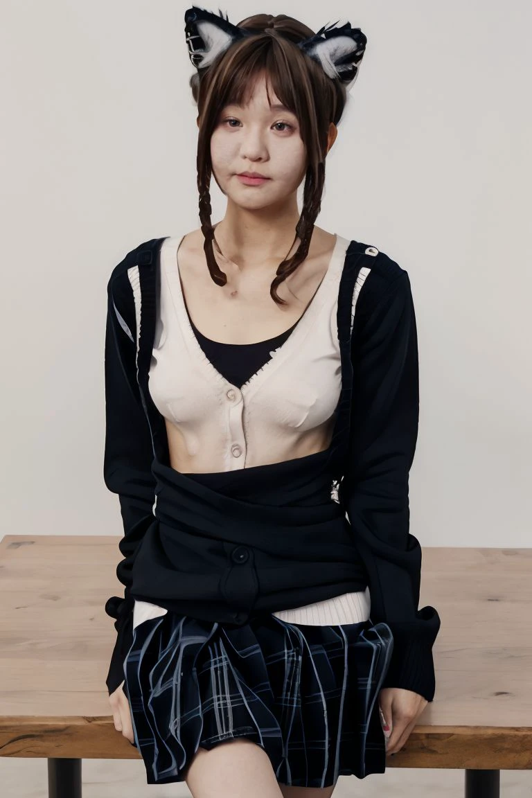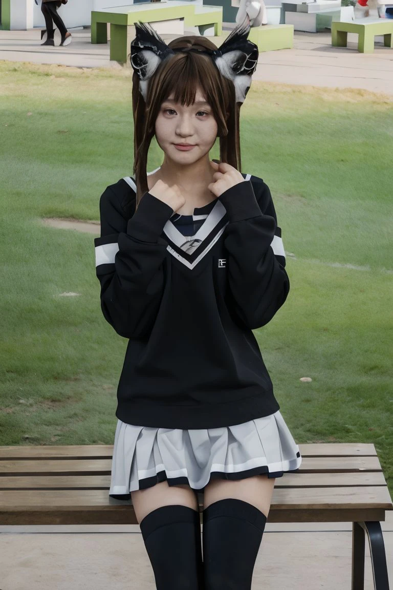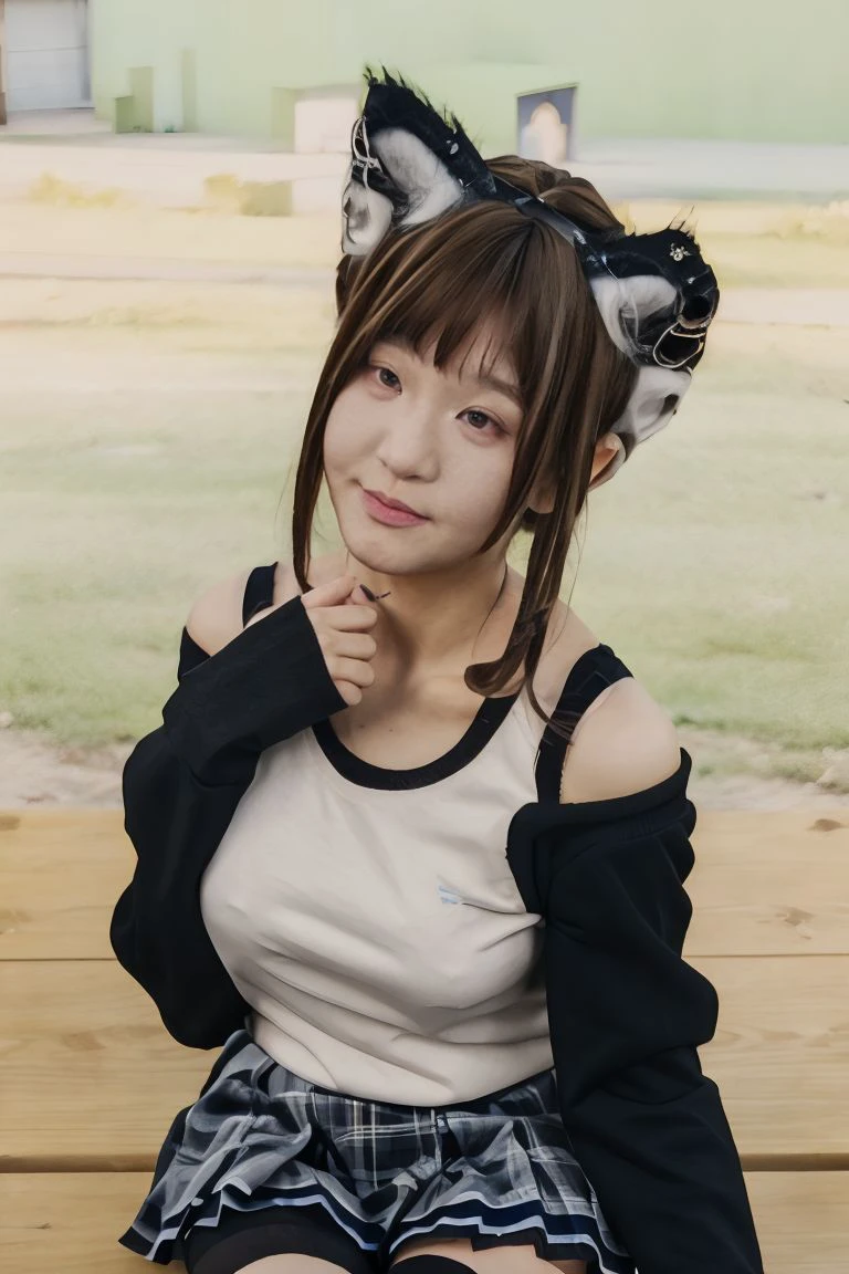 Recommend prompt: 1girl, solo, looking at viewer, realistic, photorealistic, animal ears, bangs, brown hair, outdoors, brown eyes, cat ears, closed mouth, fake animal ears