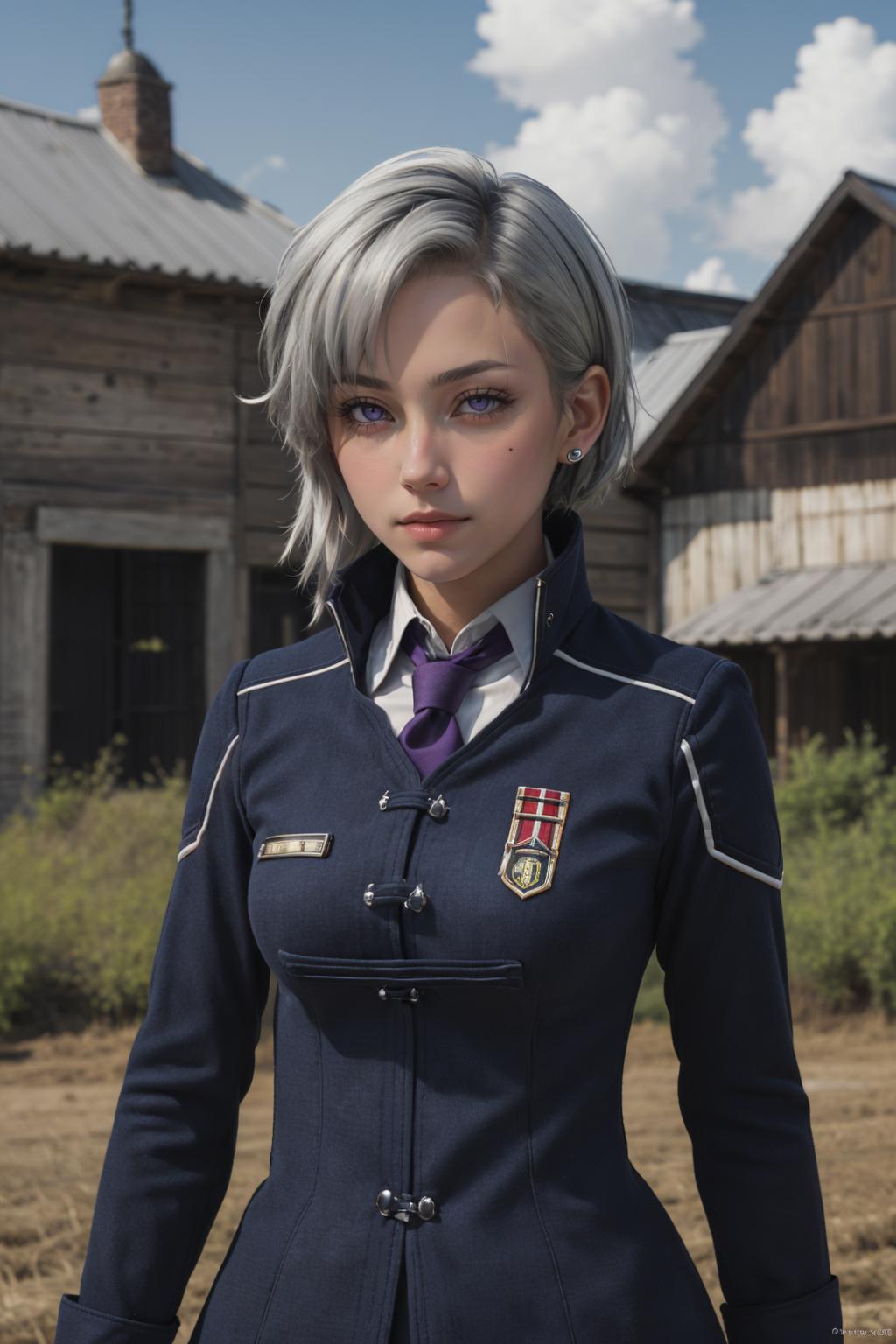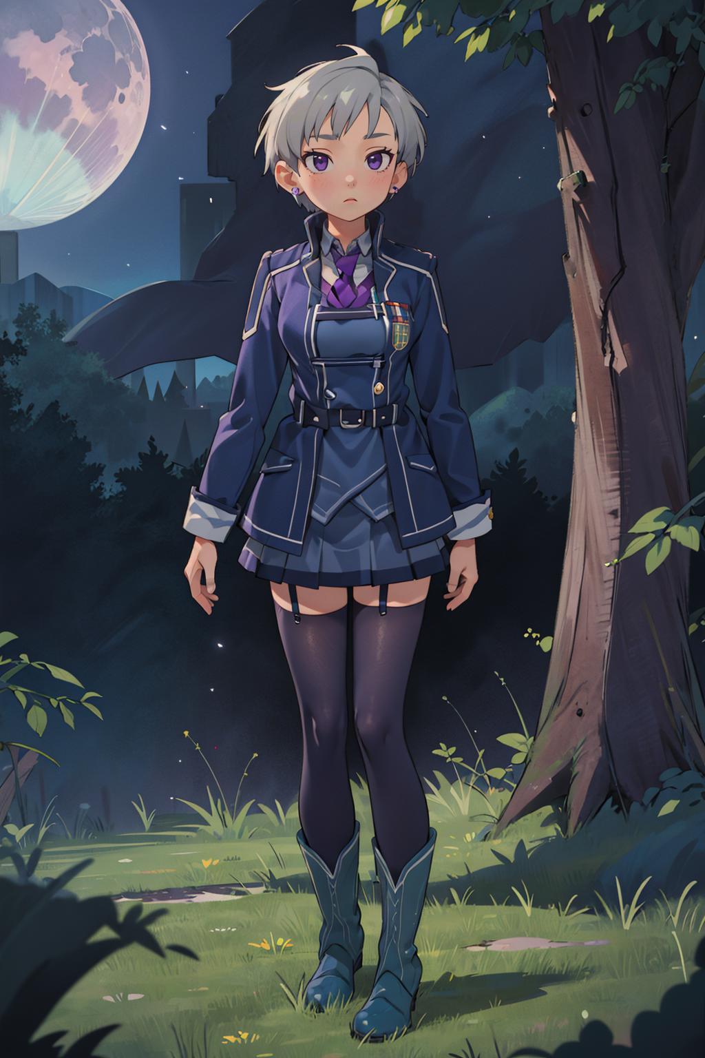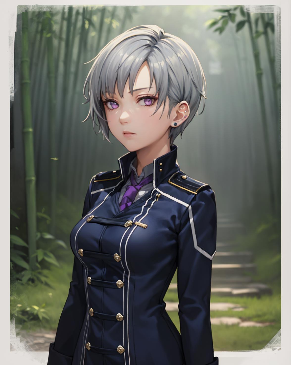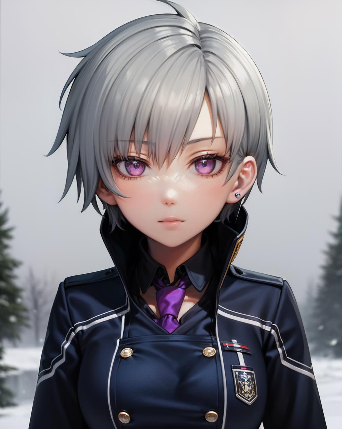 <lora:Valerie-08:0.8>, Valerie, grey hair, purple eyes, purple ear studs,