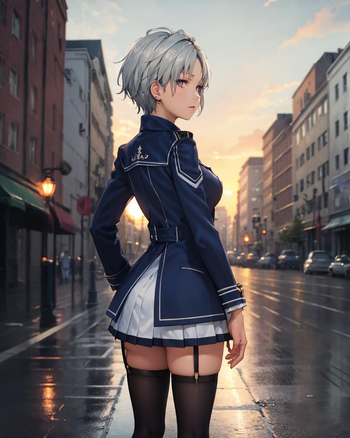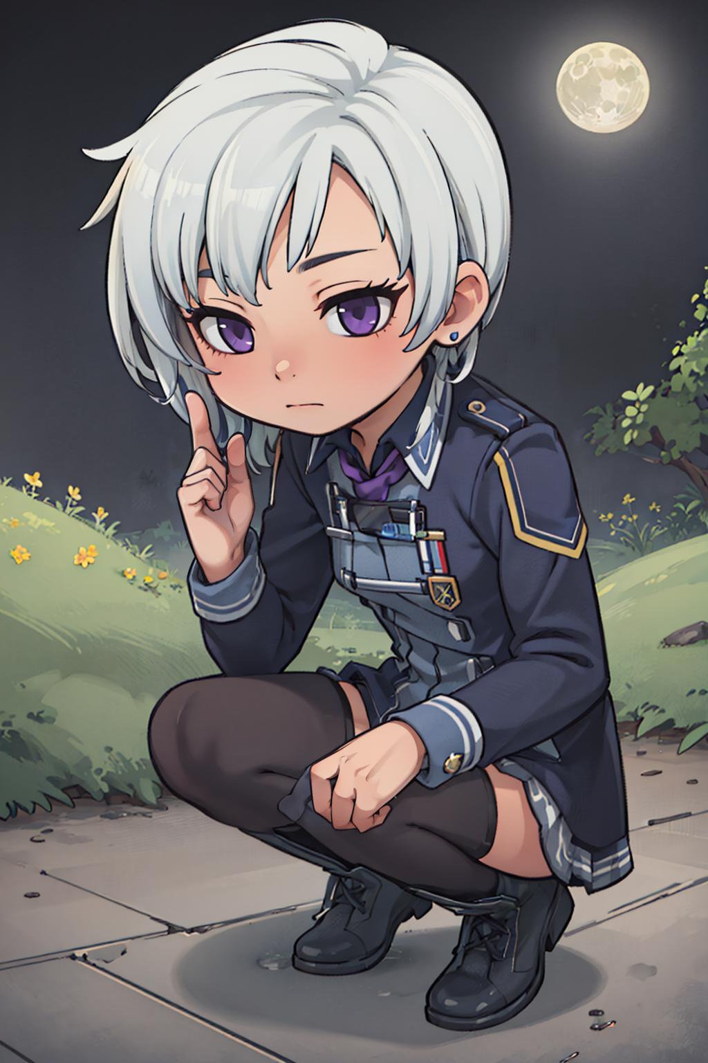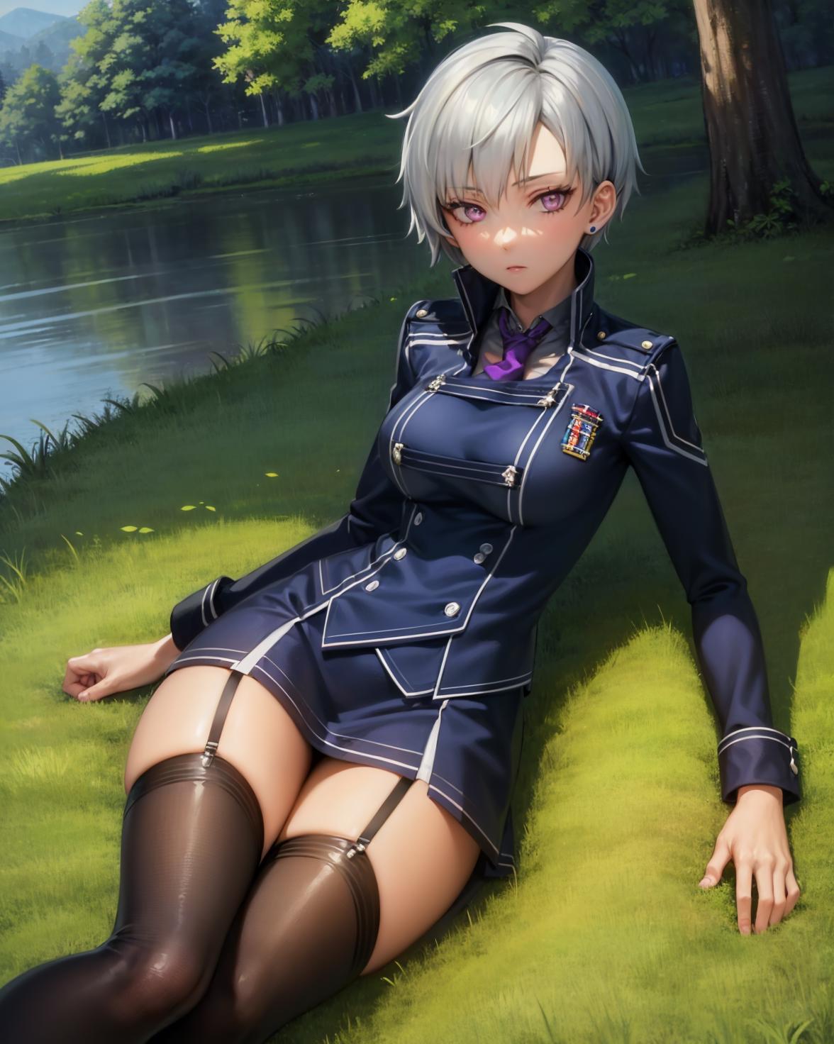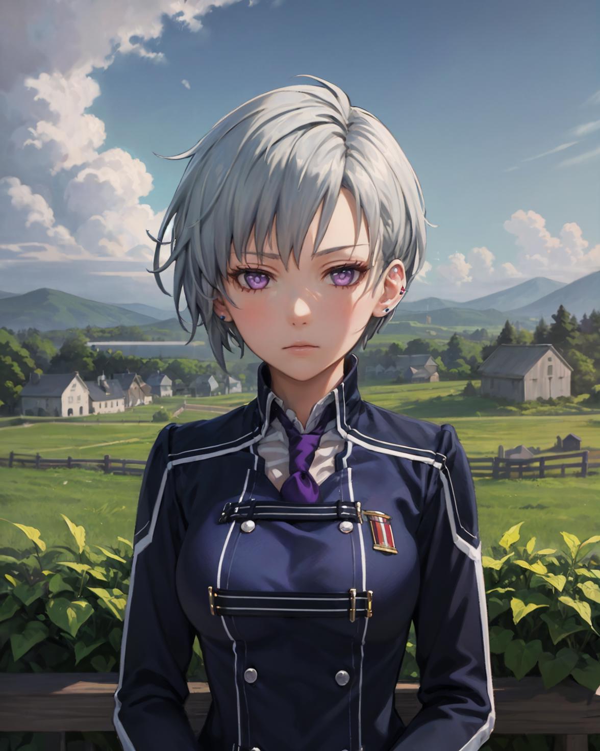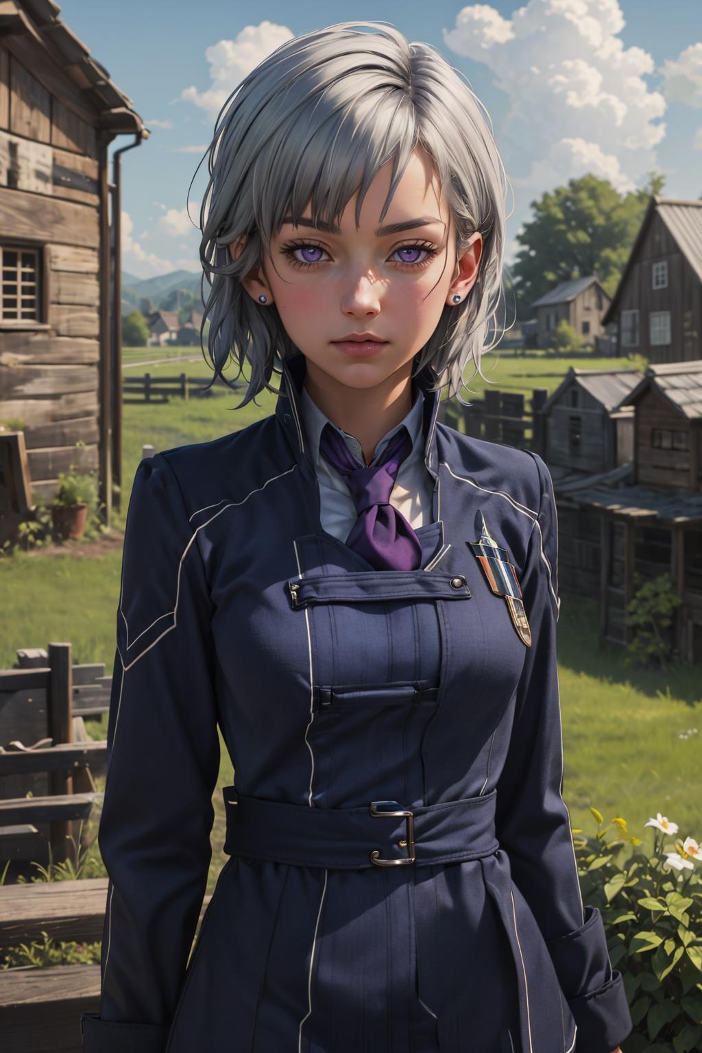 <lora:Valerie-08:0.8>, Valerie, grey hair, purple eyes, purple ear studs,