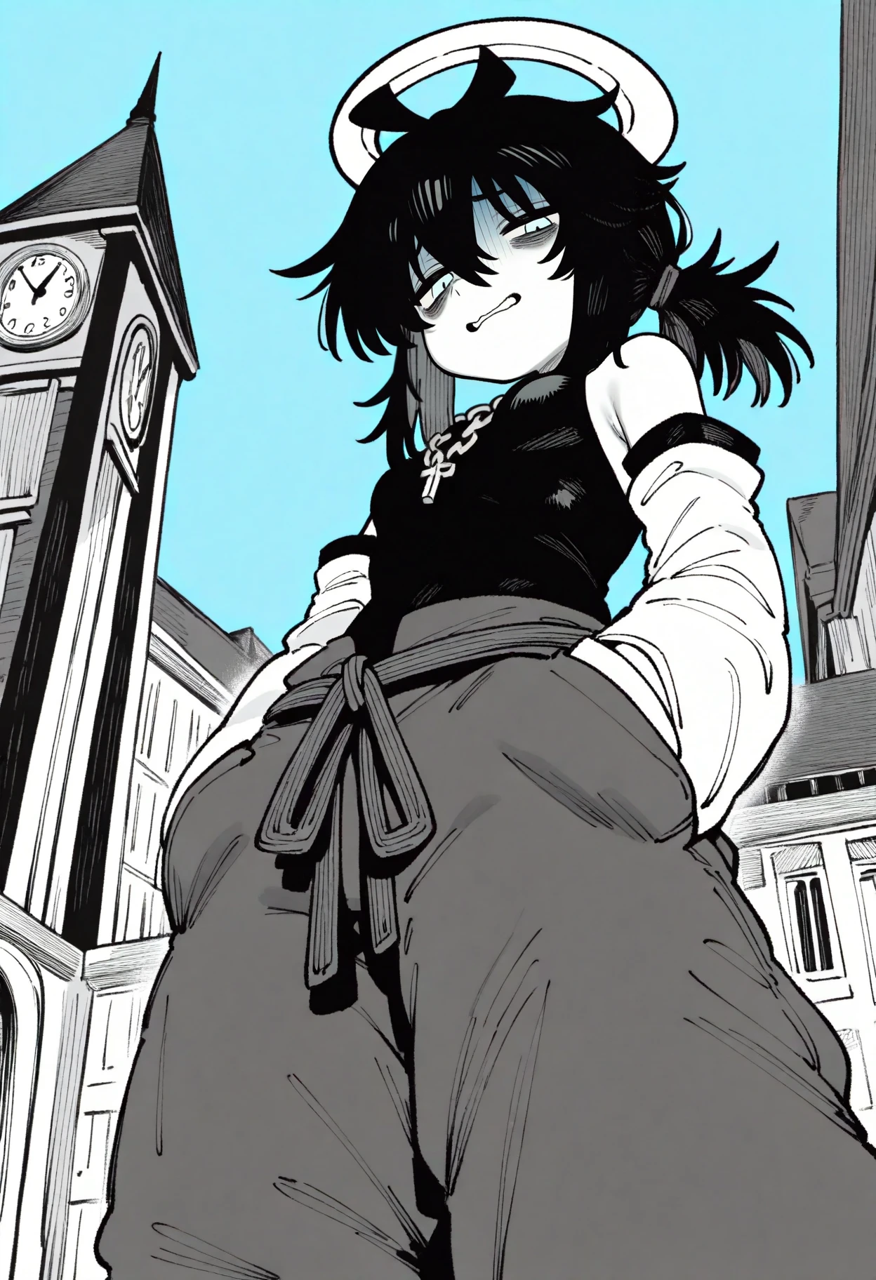 Style prompts : greyscale with colored background, hatching \(texture\), monochrome