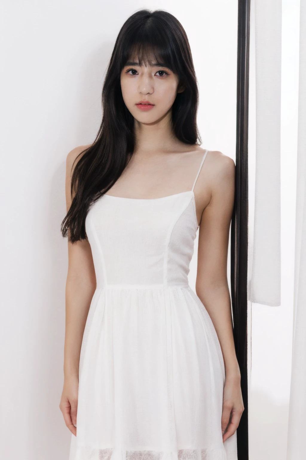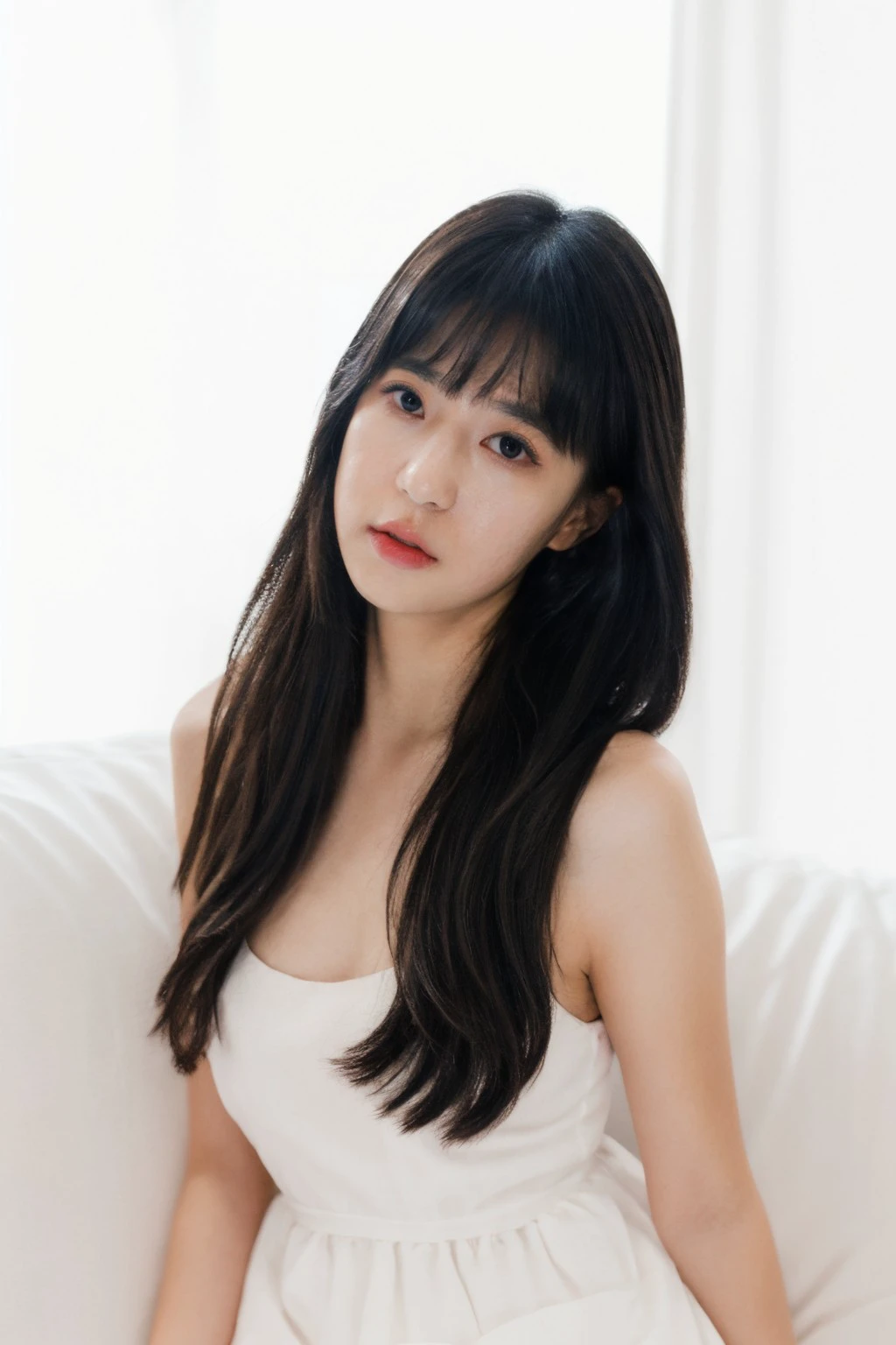 Recommend prompt: 1girl, solo, medium breasts, looking at viewer, realistic, photorealistic, long hair, black hair, bangs, black eyes