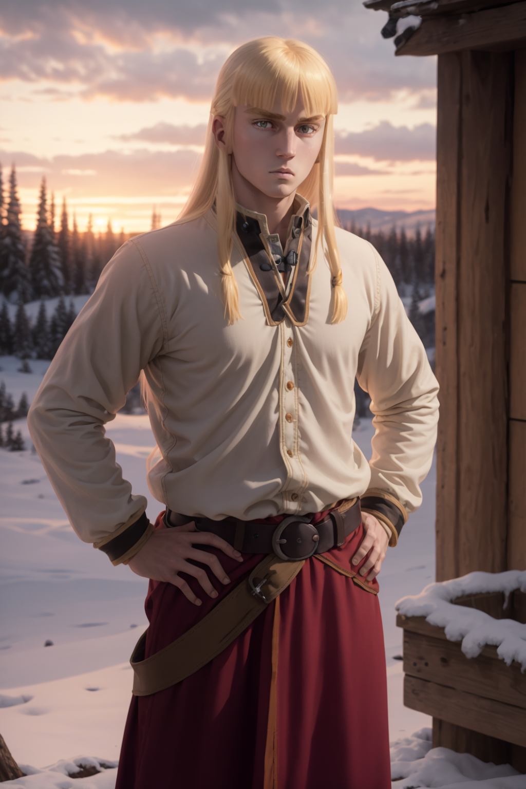 Basic prompts : 1boy, blonde hair, long hair, blue eyes, androgynous