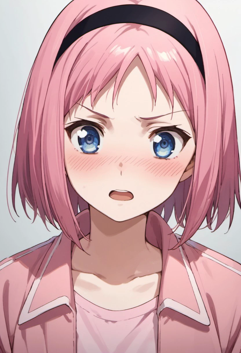 Trigger Words: kazumi schlierenzauer, pink hair, blue eyes, short hair