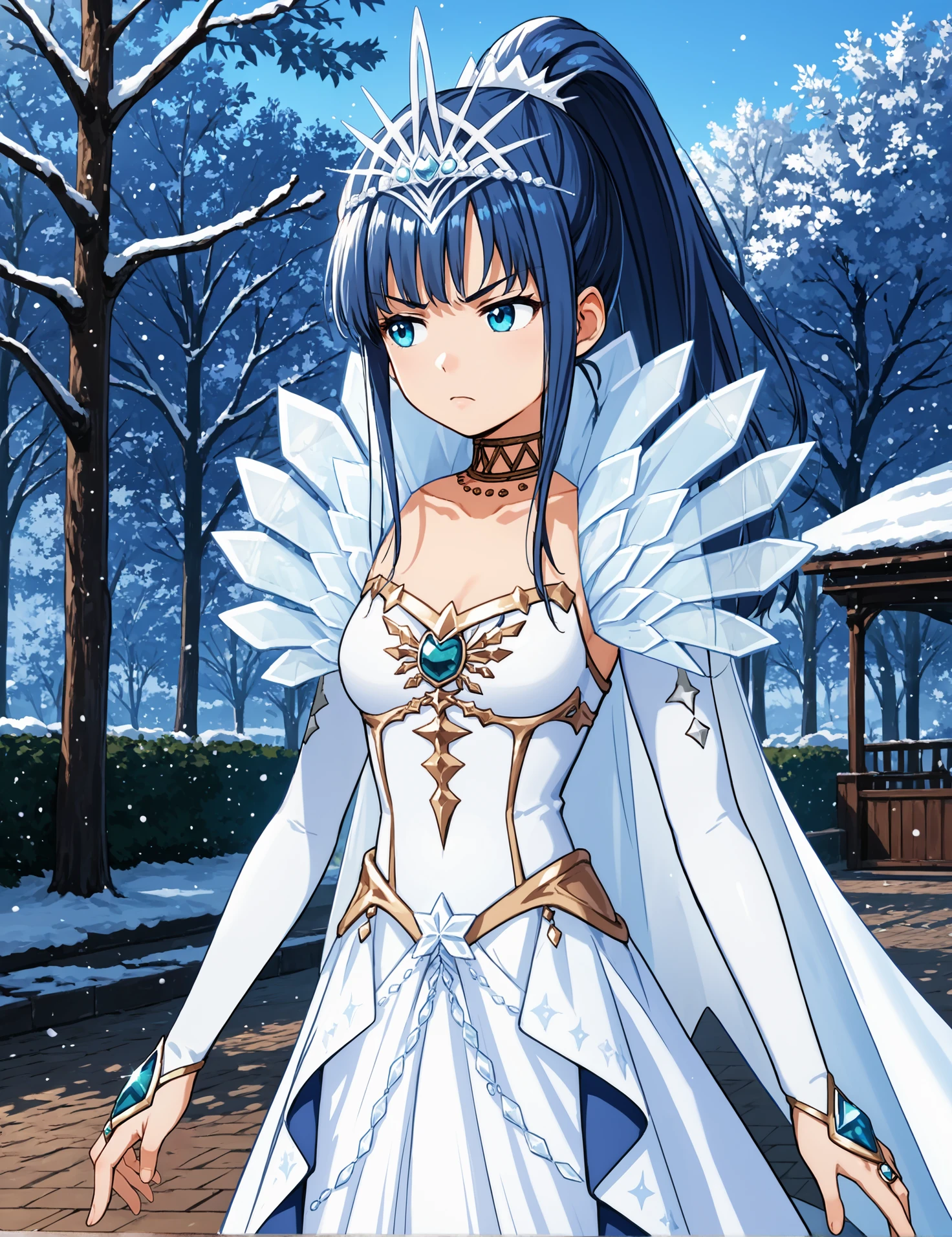 Fairy outfit: mgrcyachioutfits, nmofai, high ponytail, white tiara, gold choker, white cape, white bridal gauntlets, blue chest gem, white dress, white overskirt