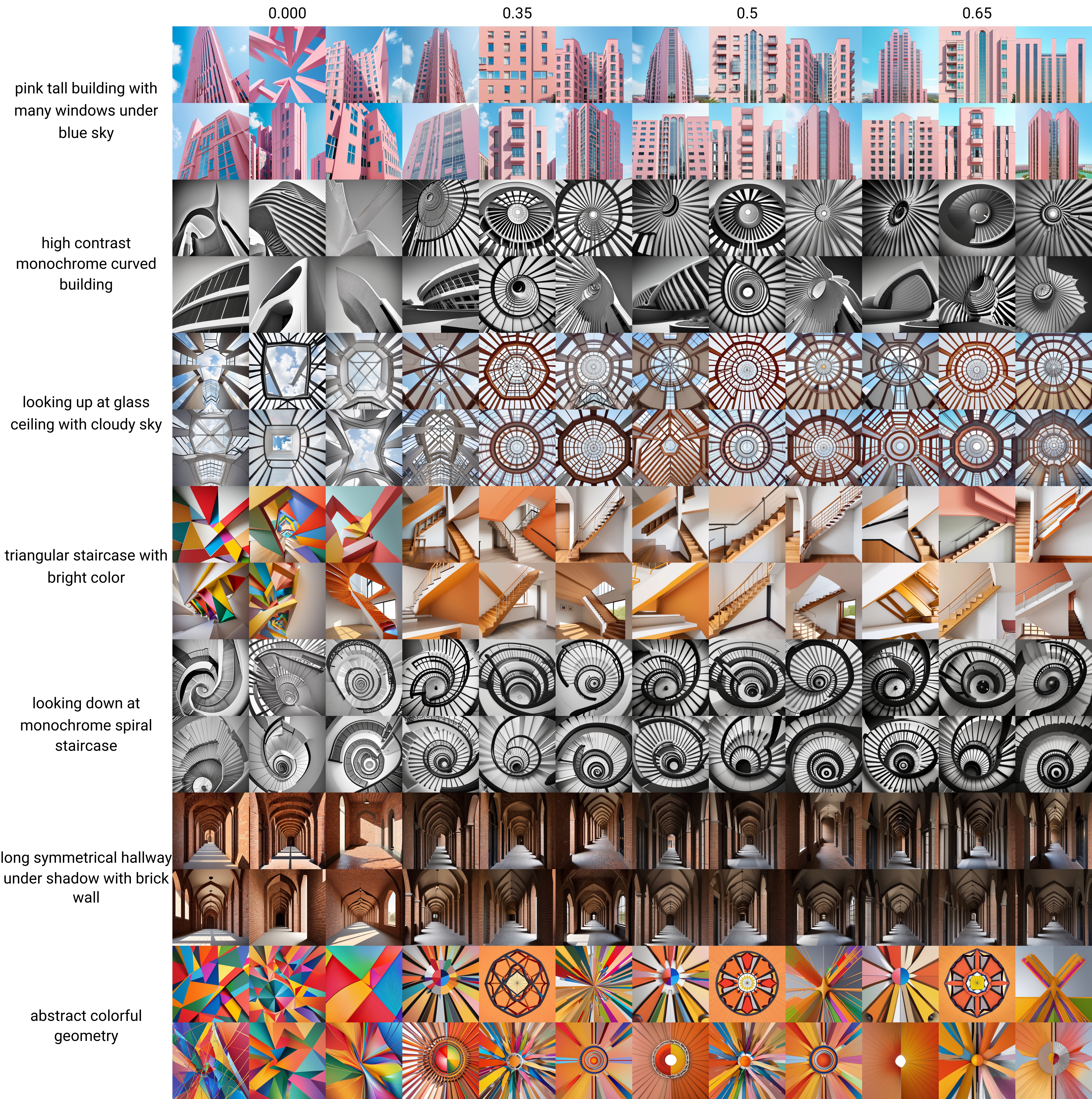 Enhance geometry building photograph, works best with staircase and symmetrical shapes.
