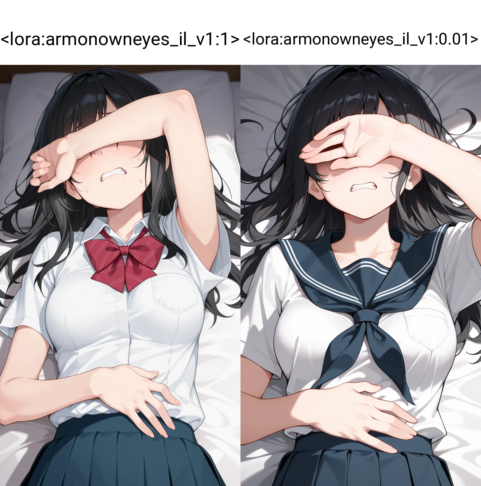 <lora:armonowneyes_il_v1:1>,armonowneyes,covering own eyes,