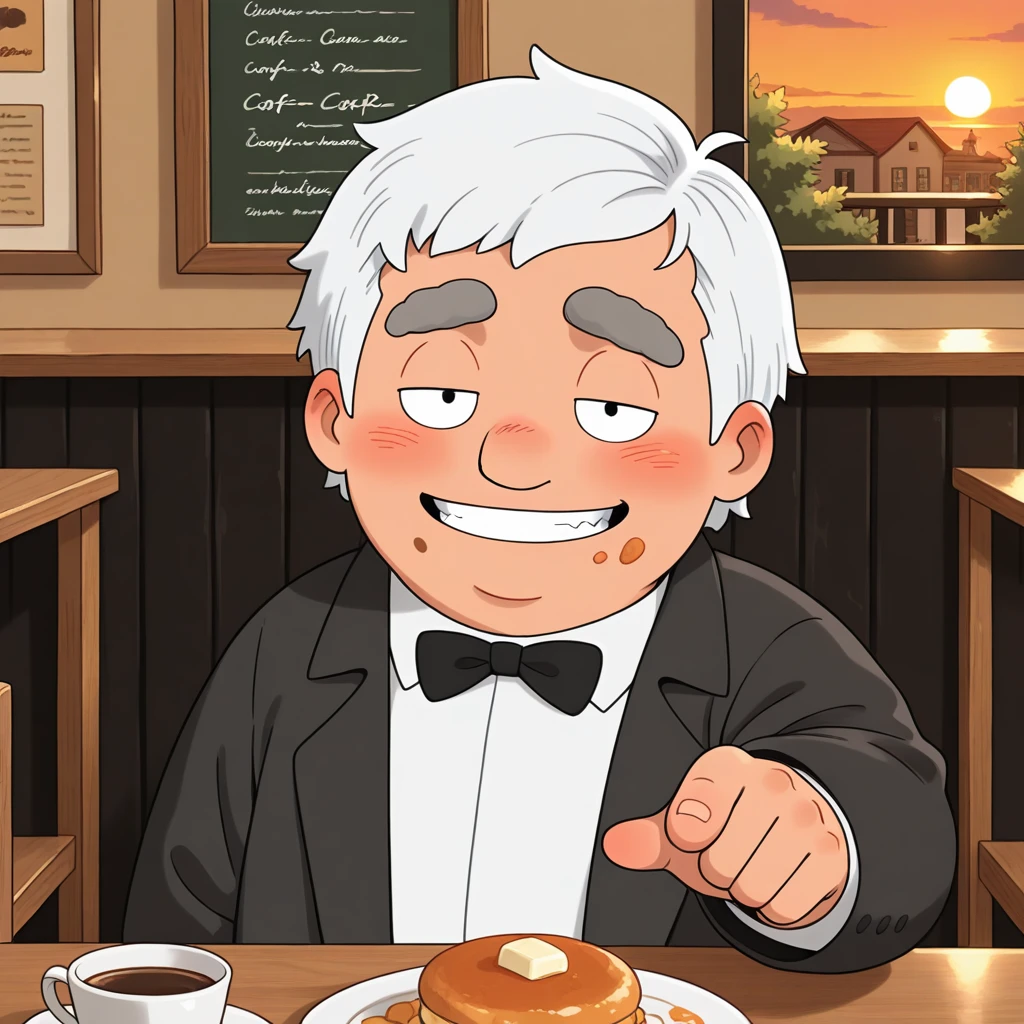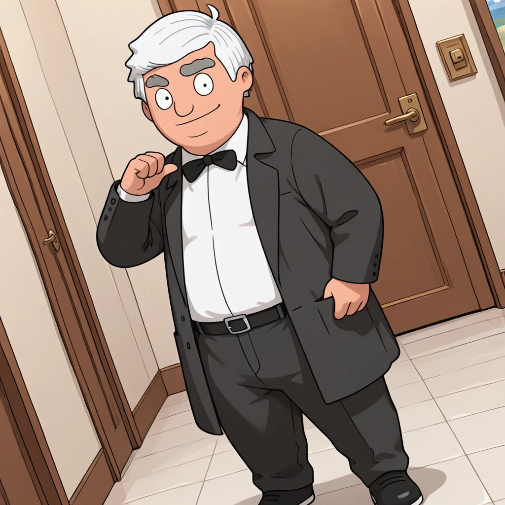 (bb-gene), (aged down), plump, 1boy, white alternate hairstyle, thick eyebrows