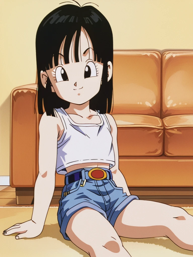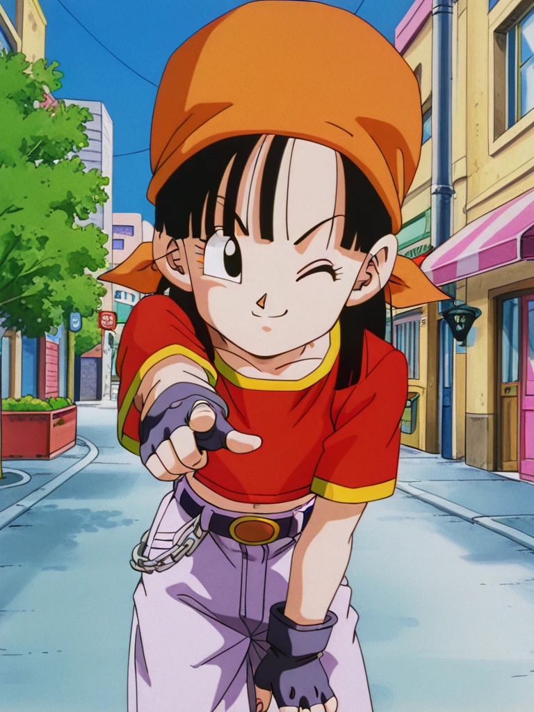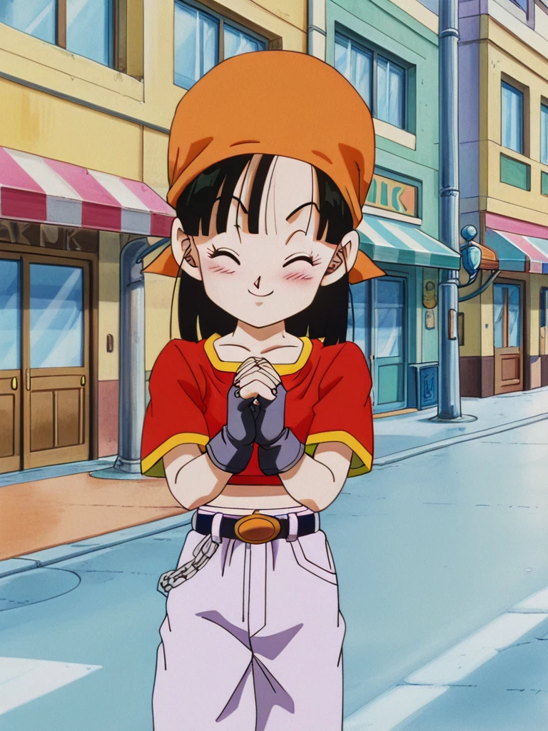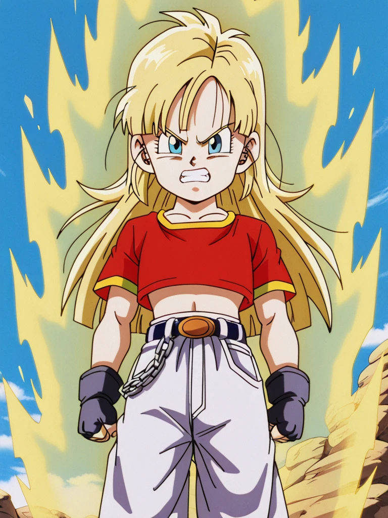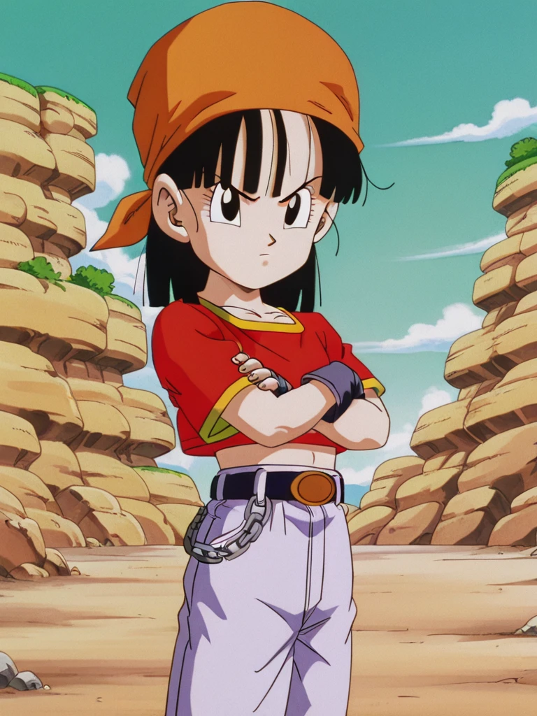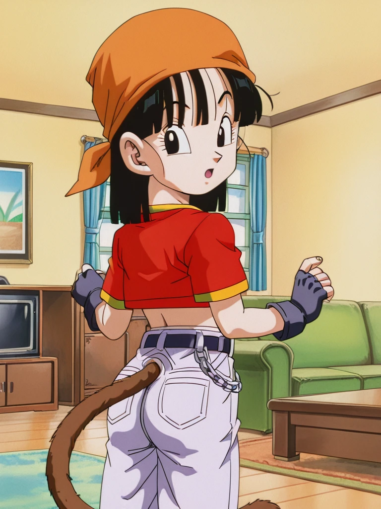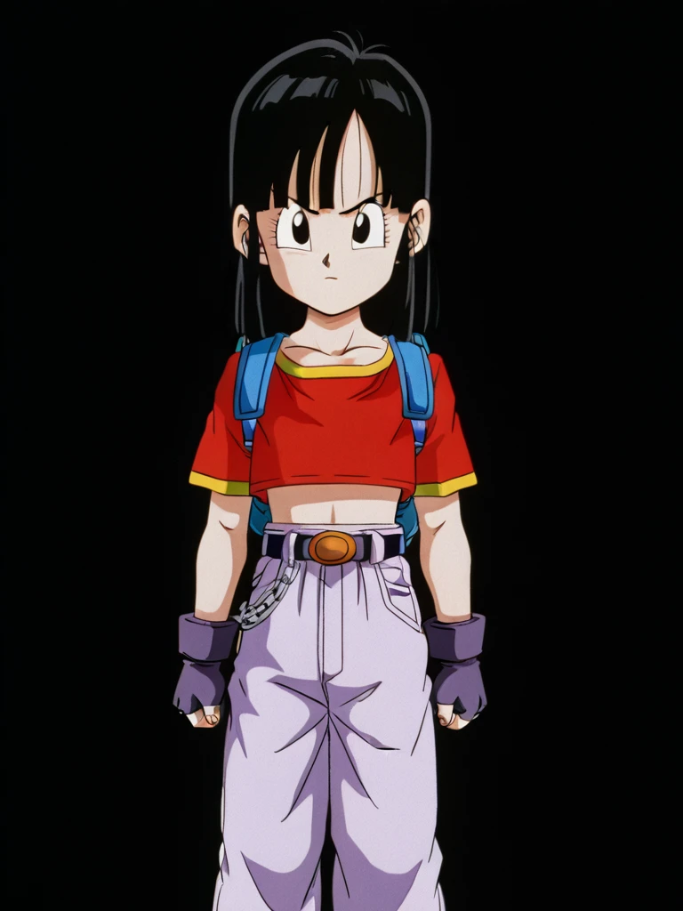 red t-shirt, crop top, short sleeves, midriff, pants, belt,