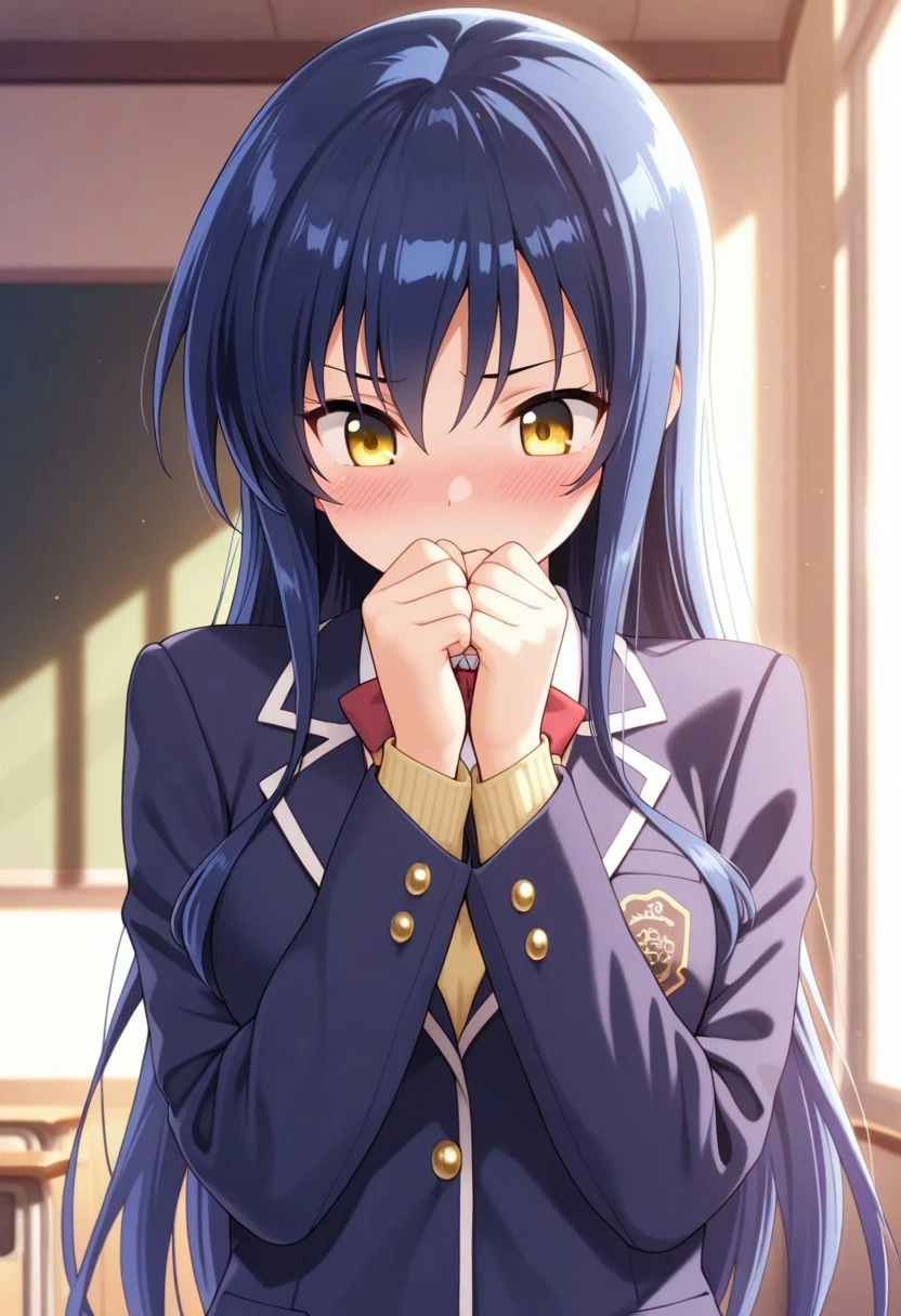 Trigger Words: takabane risa, long hair, blue hair, yellow eyes
