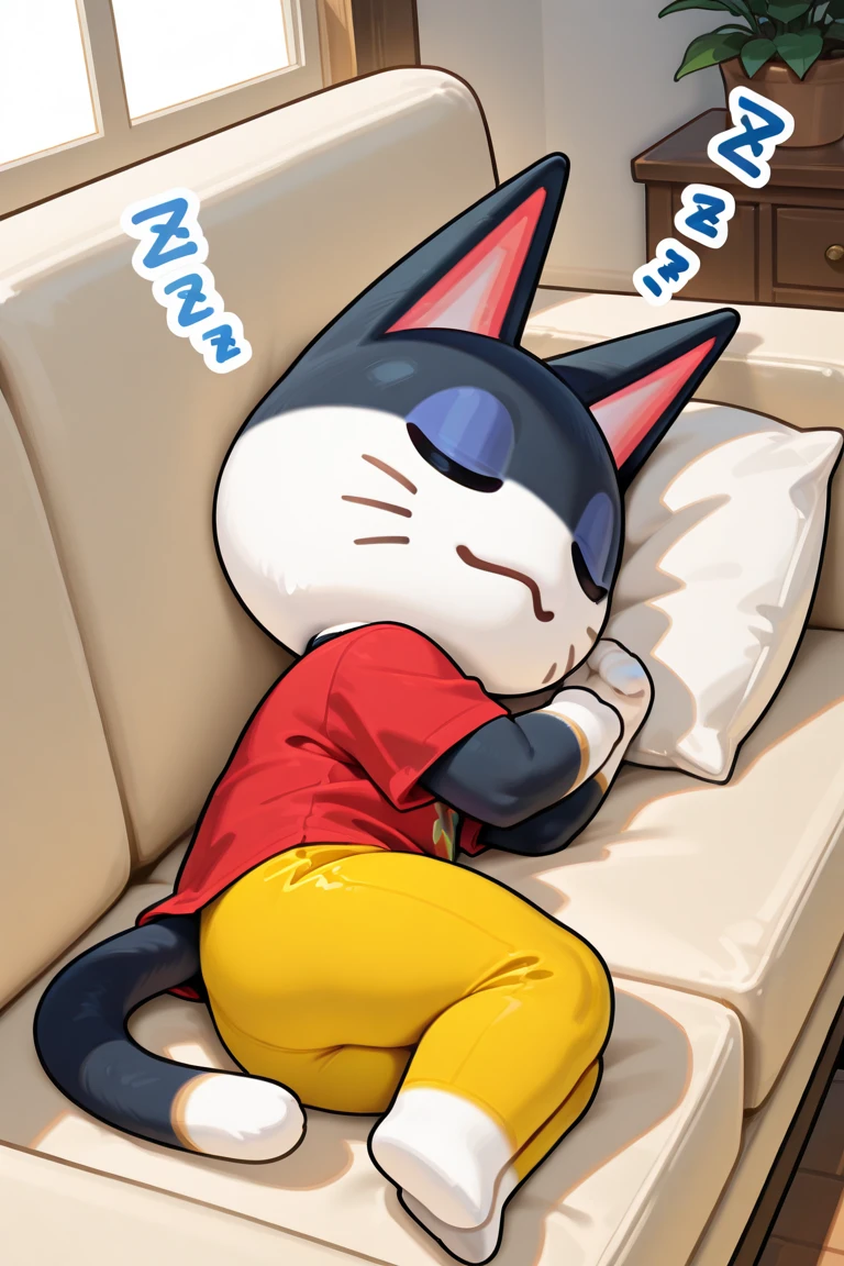 Tags: punchy_ac, anthro, furry male, black fur, white fur, two-tone fur, black eyes, colored sclera, yellow sclera, blue eyelids, cat tail,