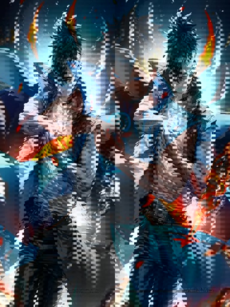 2) Karma Level 2 >>> Kawaki_Uzumaki a man with a navy blue and white jacket, kawakiblue_jacket, green shirt, karma_tattoo_marking on left cheek, piercing on right eyebrow, grey eyes, black_kawaki_hair and yellow_side_hair, karma_tattoo marking on his arm