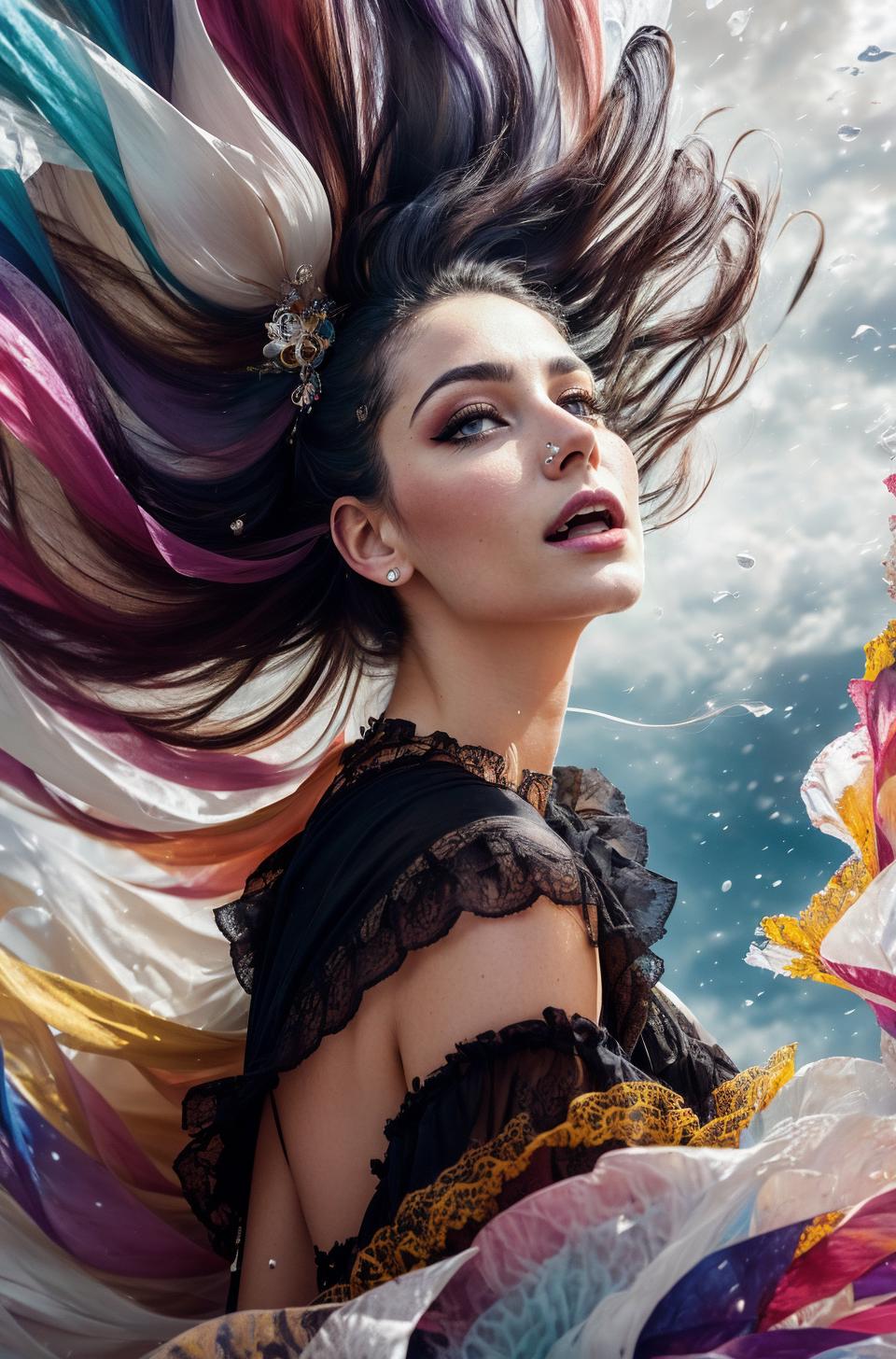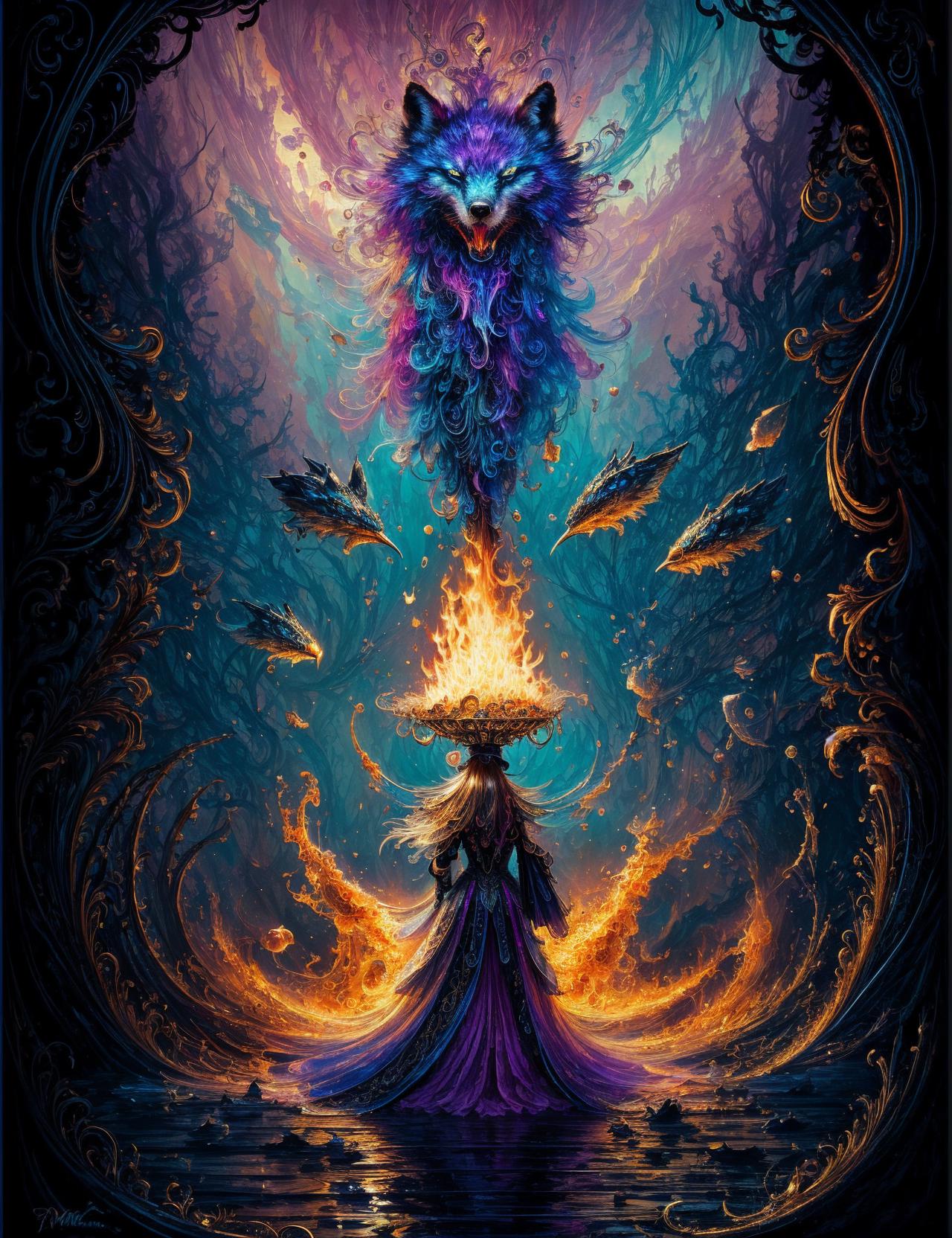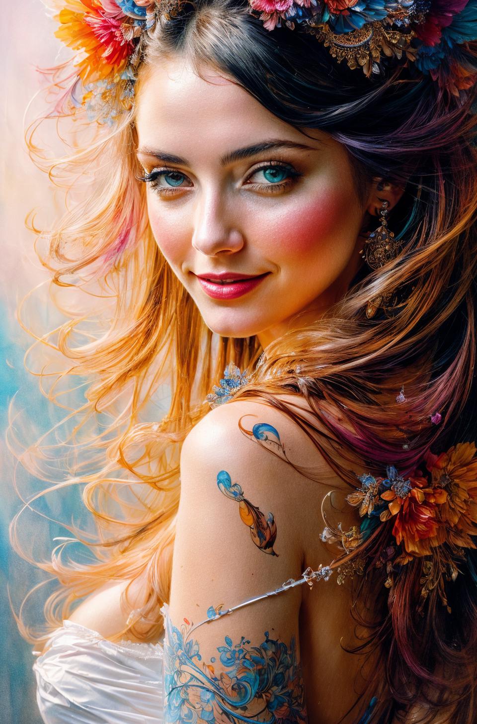 This model is based primarily on an artistic style. The style is combined with different artistic trends, such as: black ink flow, an airbrush painting, beautiful fantasy art, calligraphy, acrylic, watercolor art, Rococo.