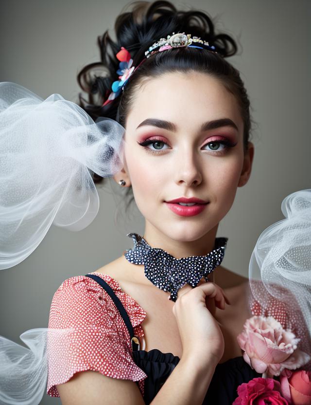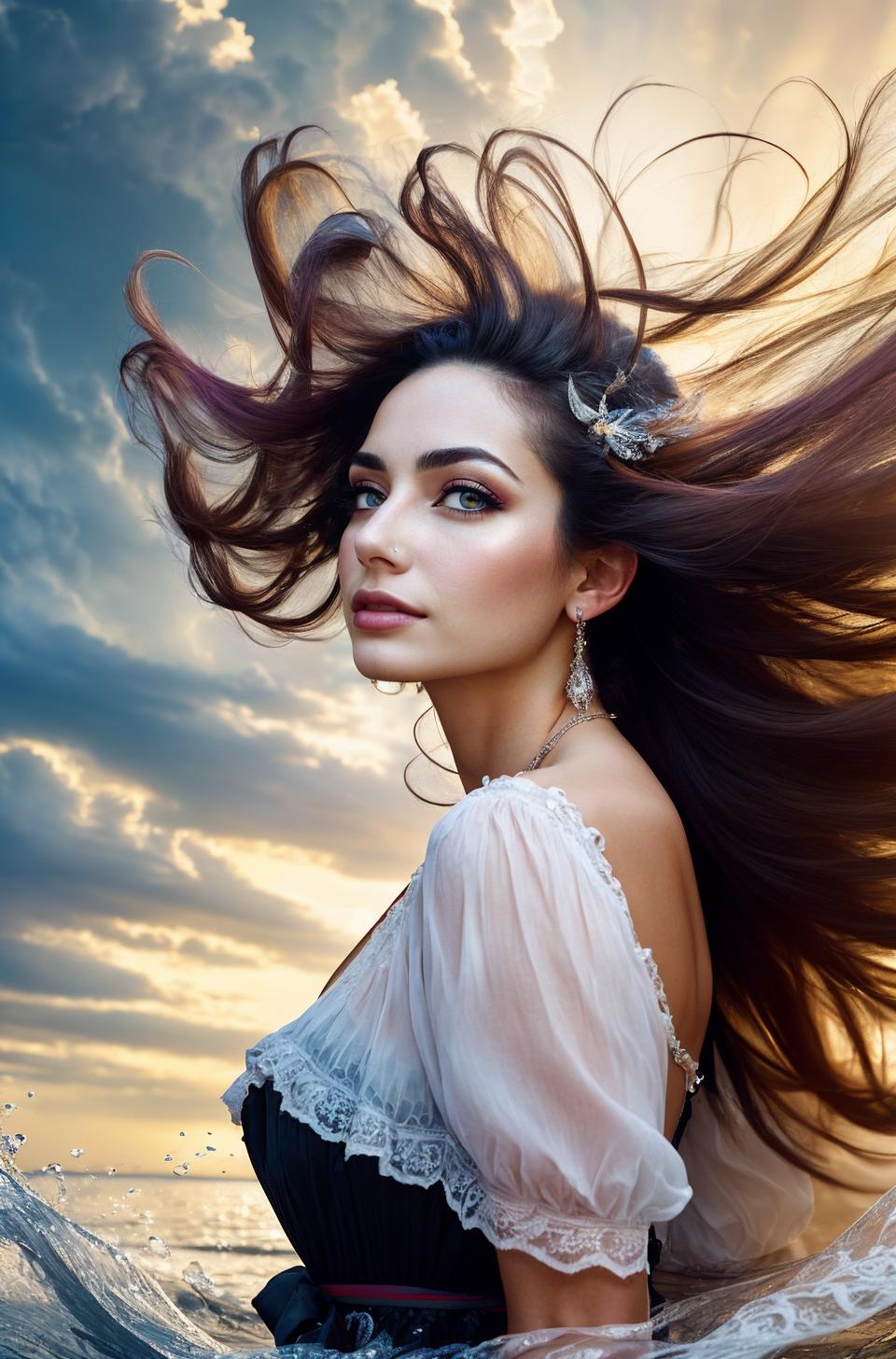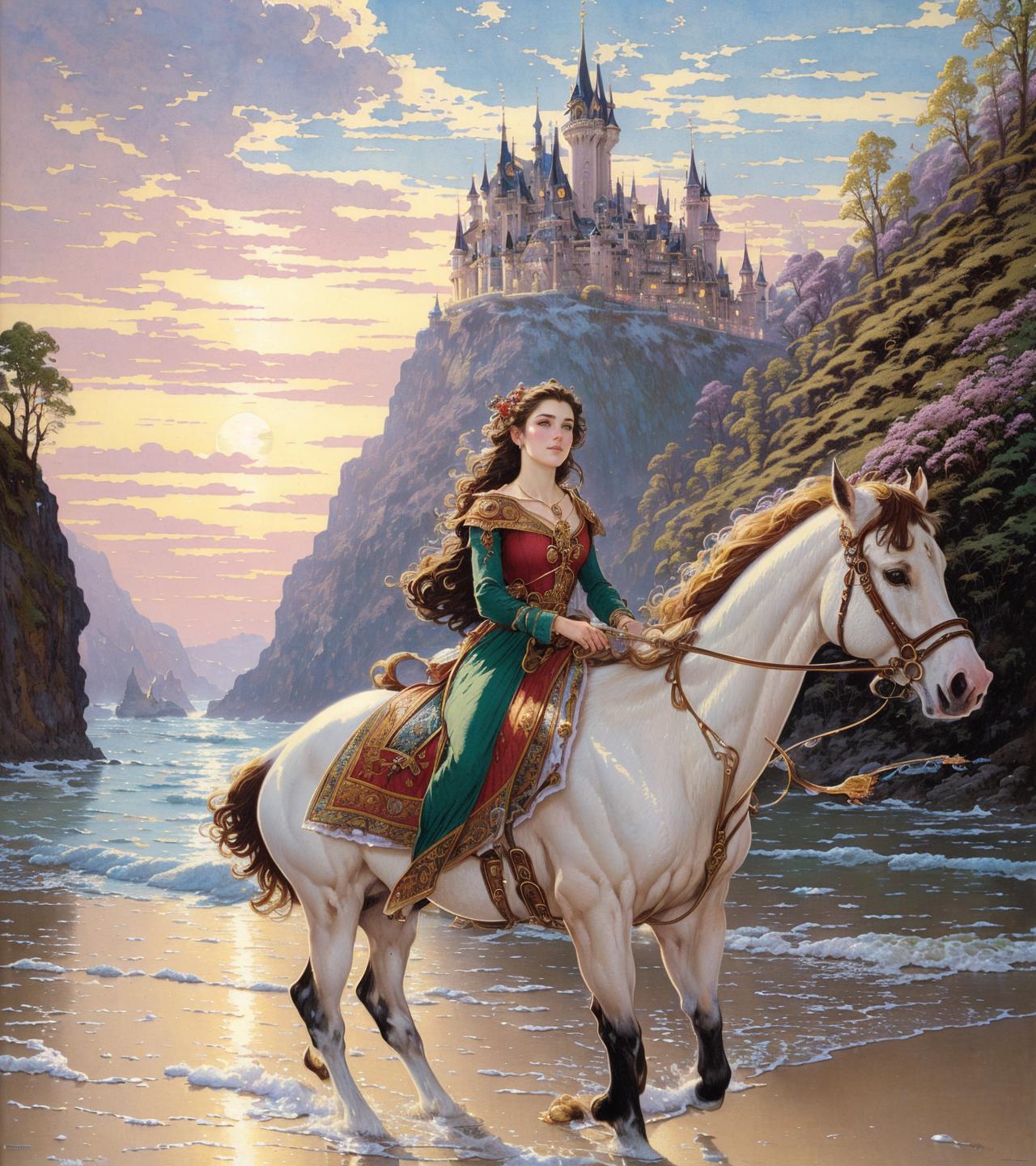 This model is based primarily on an artistic style. The style is combined with different artistic trends, such as: black ink flow, an airbrush painting, beautiful fantasy art, calligraphy, acrylic, watercolor art, Rococo.