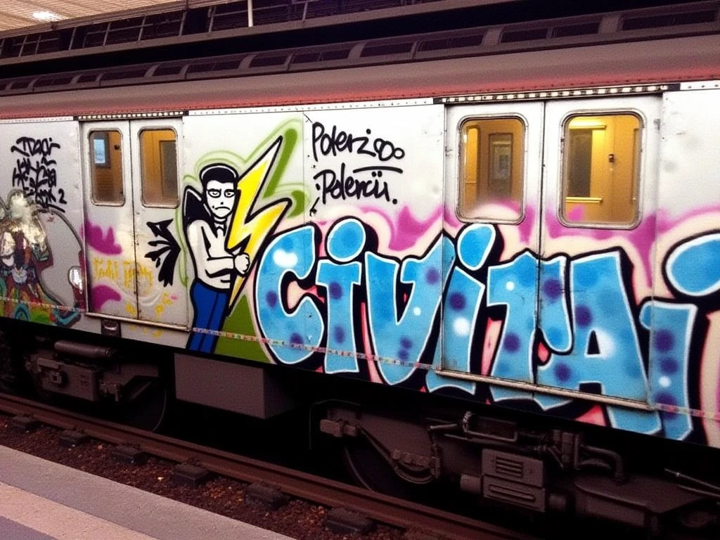 This Lora is the first experimental version that fairly closely reproduces the style of the early graffiti that originated in America in the late 1970s and early 1980s. The style and composition are deliberately very simple and mundane as were the early works done on subway cars.