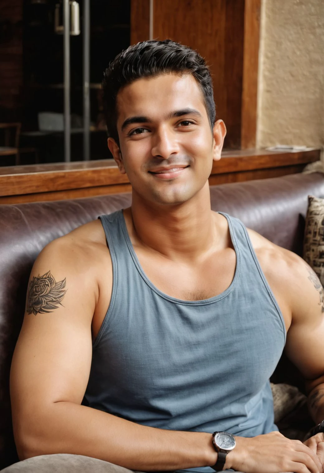 Action Word: beerbiceps a man <lora:Ranveer-Allahbadia-beerbiceps:1>,