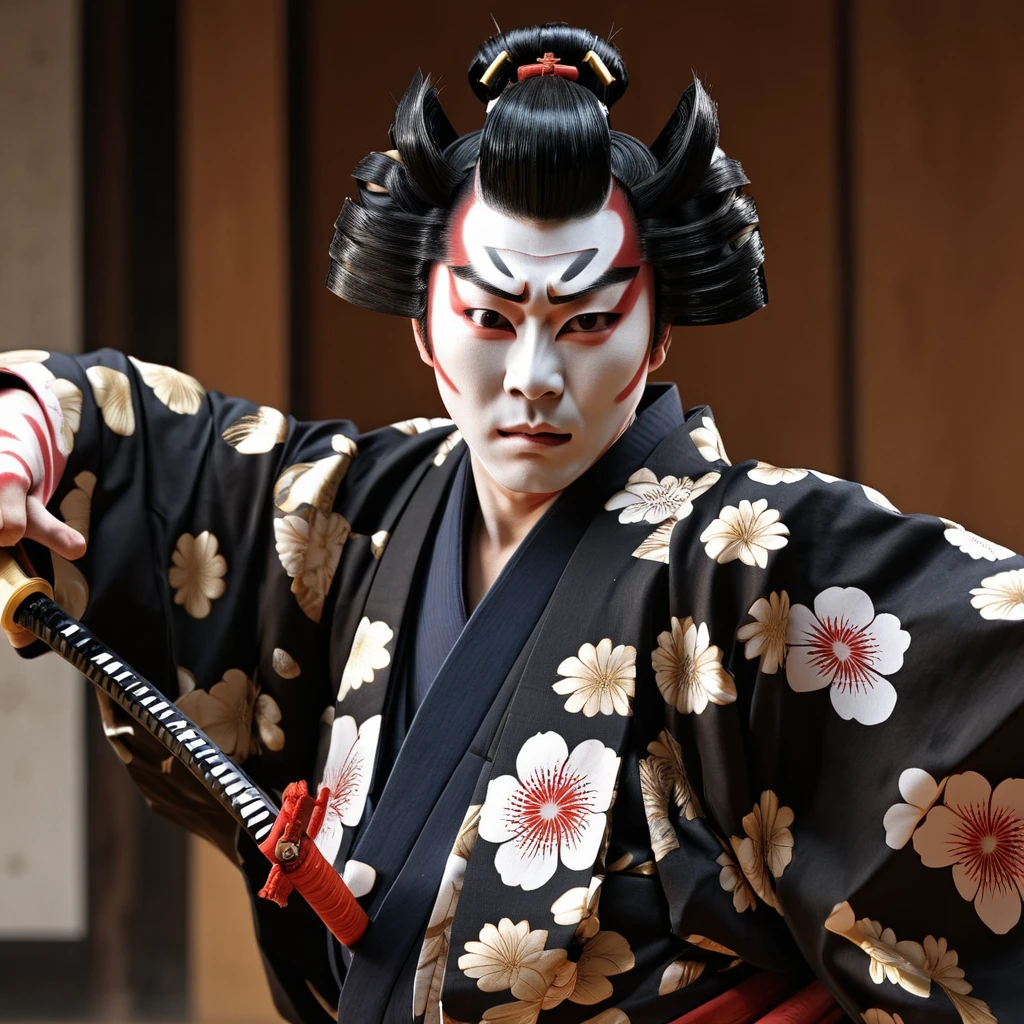 This model generates images of Kabuki actors. Kabuki is a dance and theatre art form of Japan. I didn't train the LORA on specific Kumadori, So, it's real an amalgam of various looks. Have fun.