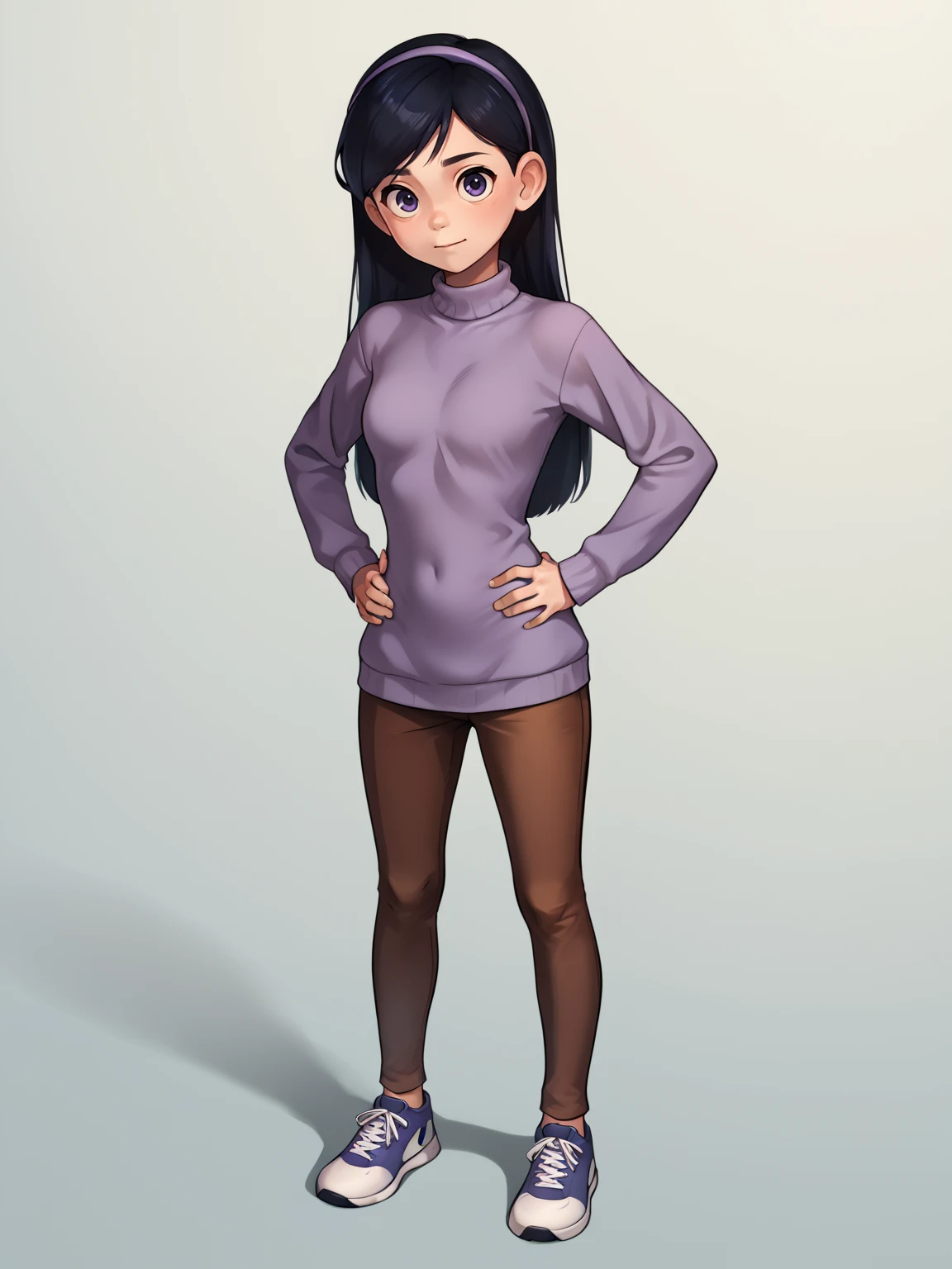 Basic prompts : score_9, 1girl, black hair, long hair, blue eyes, purple eyes, hairband