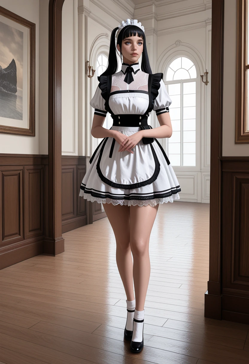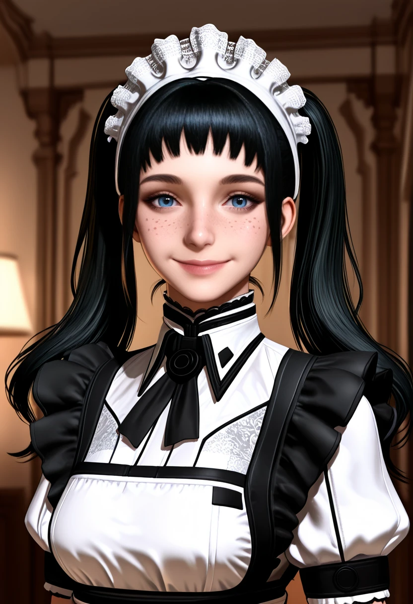 Twintails, black hair, maid headdress, maid, bangs