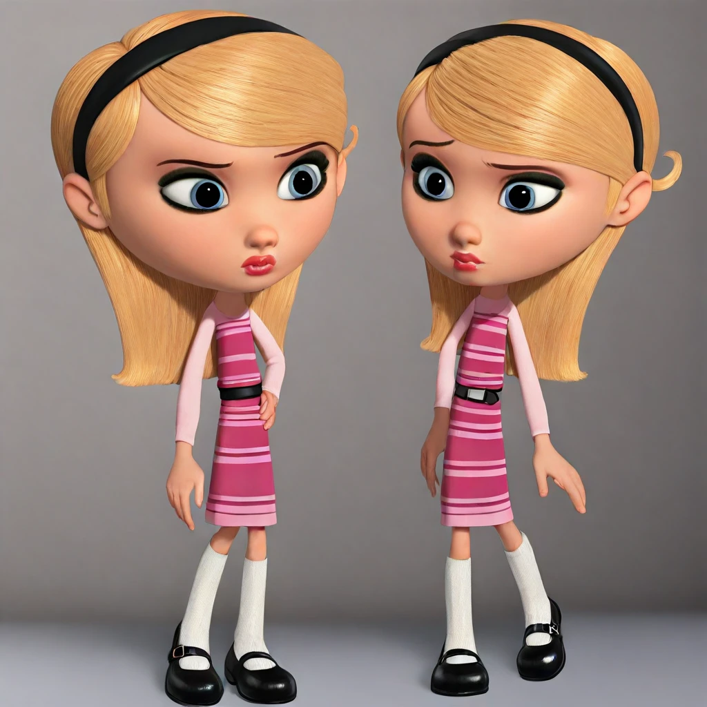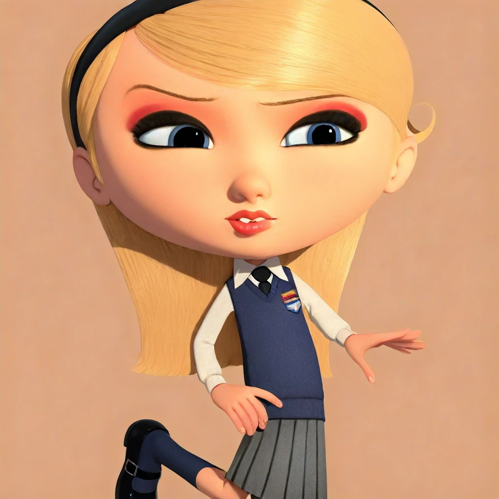 1girl, penny peterson, long hair, straight hair, sideswept bangs, blonde hair, blue eyes, makeup, eyeliner, lipgloss
