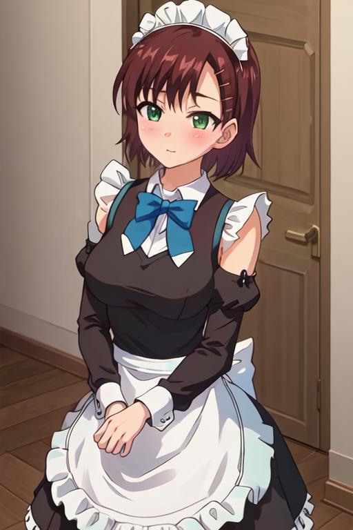 The trigger word is sana_kuranaka_onichichi, and the recommended tags are best quality, masterpiece, highres, solo, {sana_kuranaka_onichichi:1.15}, short_hair, brown_hair, blush, hair_ornament, hairclip, green_eyes, breasts.