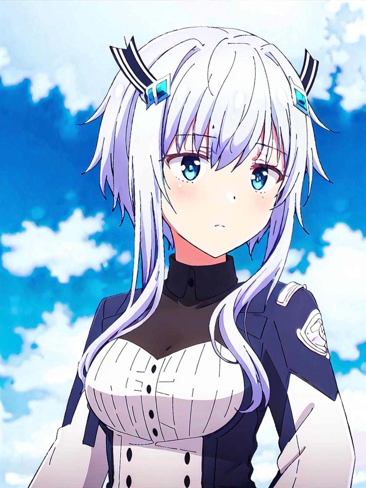 msh,white hair,blue eyes,white uniform