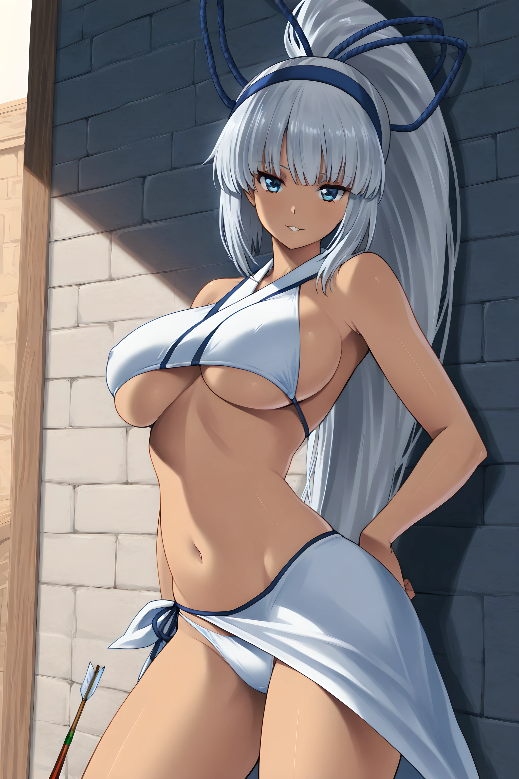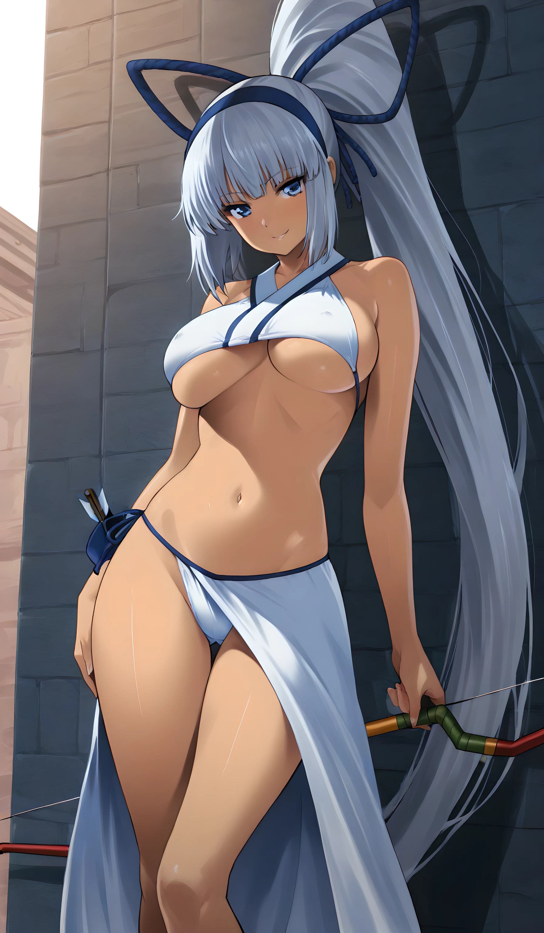 Standard outfit tag is "underboob, side boob, underwear, sarong" tag. Other outfit is pretty much free and possible to do easily.