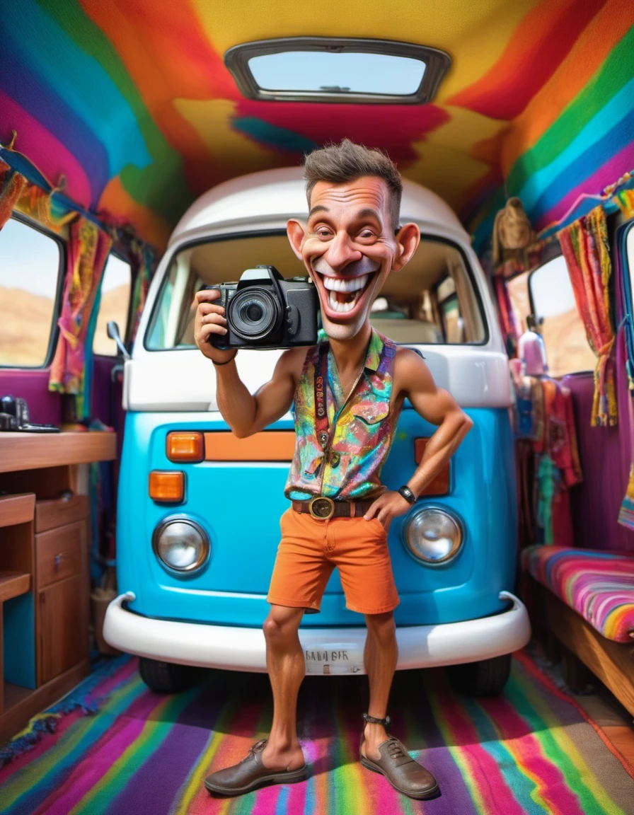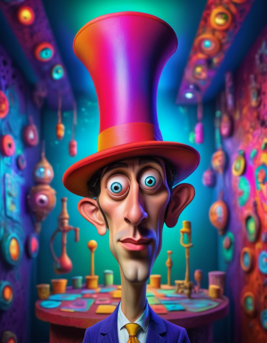 caricature closeup portrait of subject in wearing clothing style in location