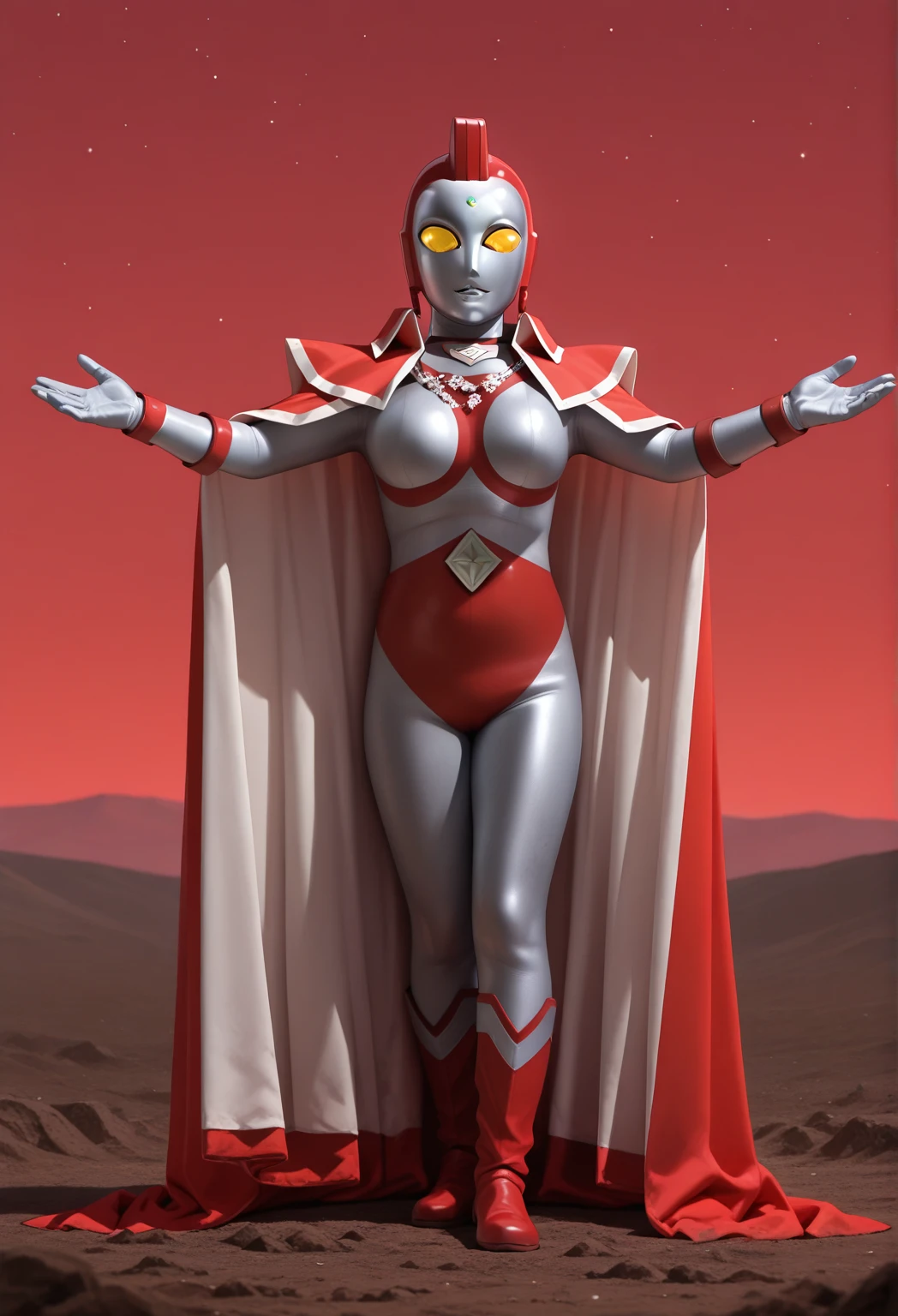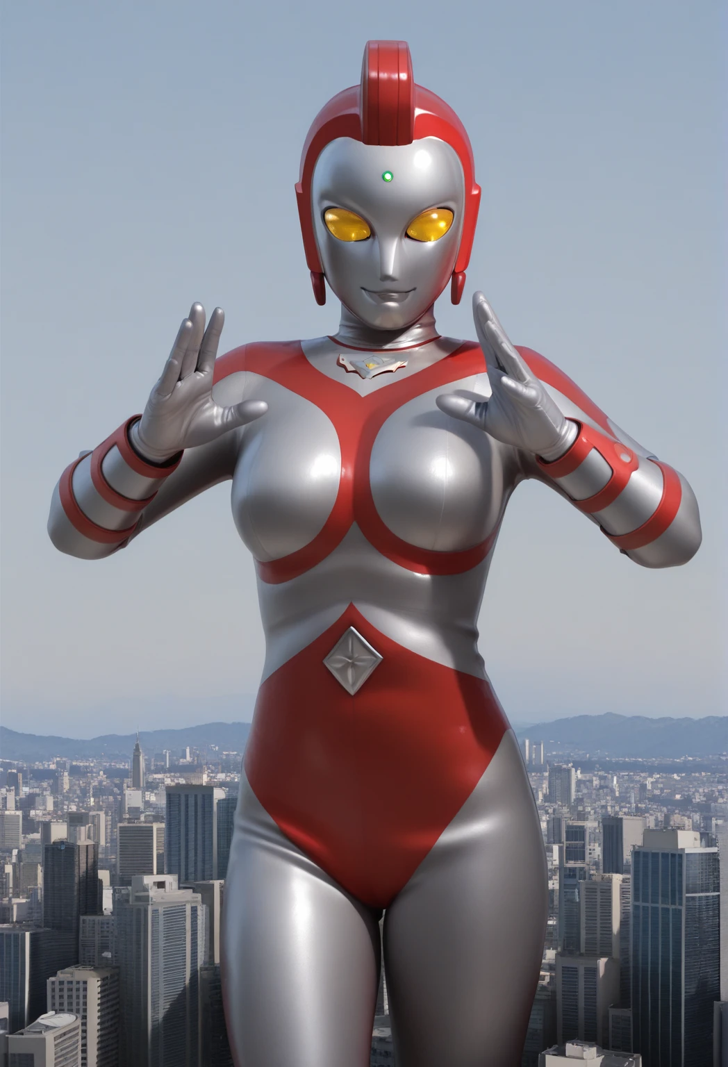Recommended prompt: tokusatsu, 1girl, yullian, bodysuit, yellow eyes, red skin, silver skin, multicolored skin