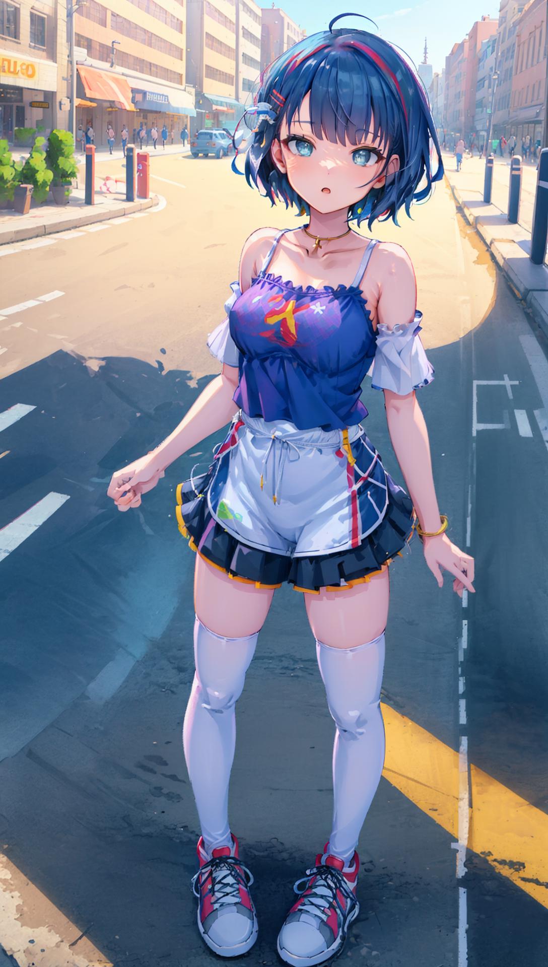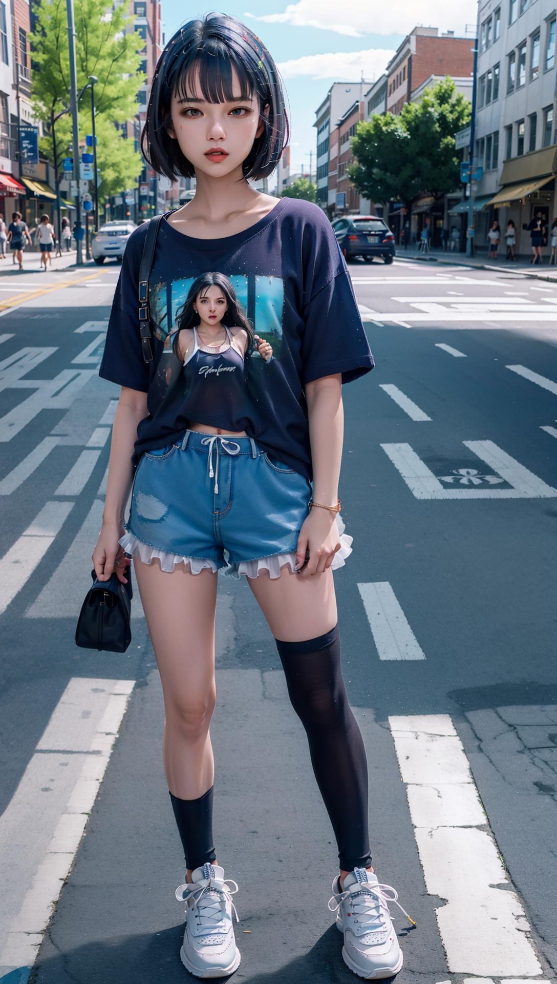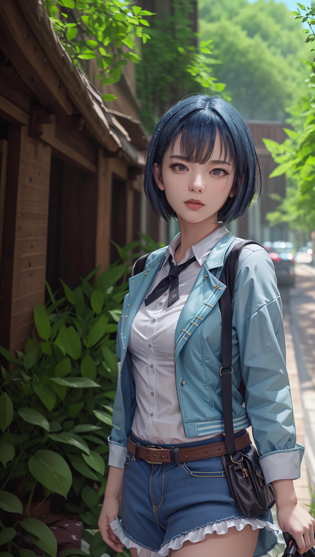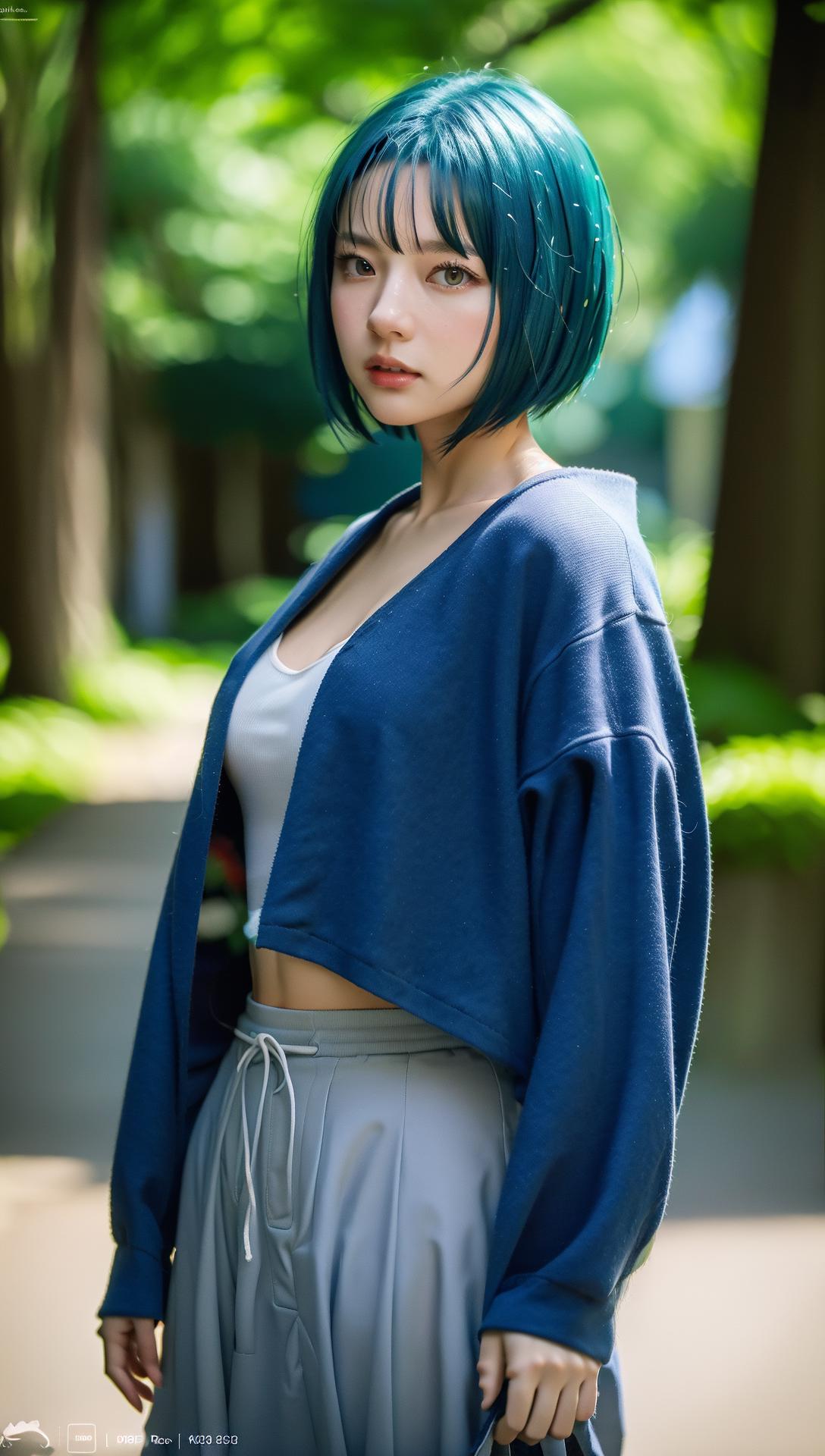 跑真人图片的话,头发经常是黑色的,需要自己加tag:blue hair,tag的权重给到1.4