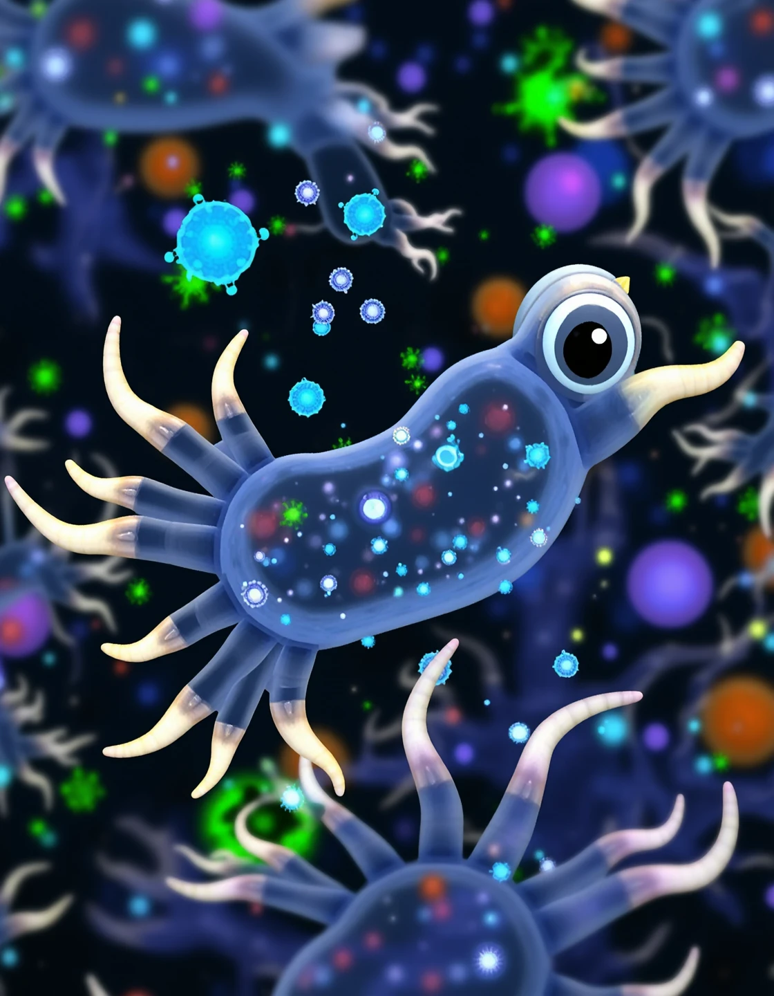 This LoRA is inspired by the cell stage of Spore, capturing the vibrant, surreal world of microscopic life in a fantastical tidepool. The art style combines cartoonish whimsy with organic textures, bringing to life creatures that are part alien, part deep-sea organism. Expect bright colors, glowing eyes, exaggerated limbs, and translucent or bioluminescent features set against swirling, gradient aquatic backgrounds. Creatures may have spines, tentacles, pincers, antennae, or cilia-like appendages, evoking the feel of microscopic exploration through a playful, digital lens.