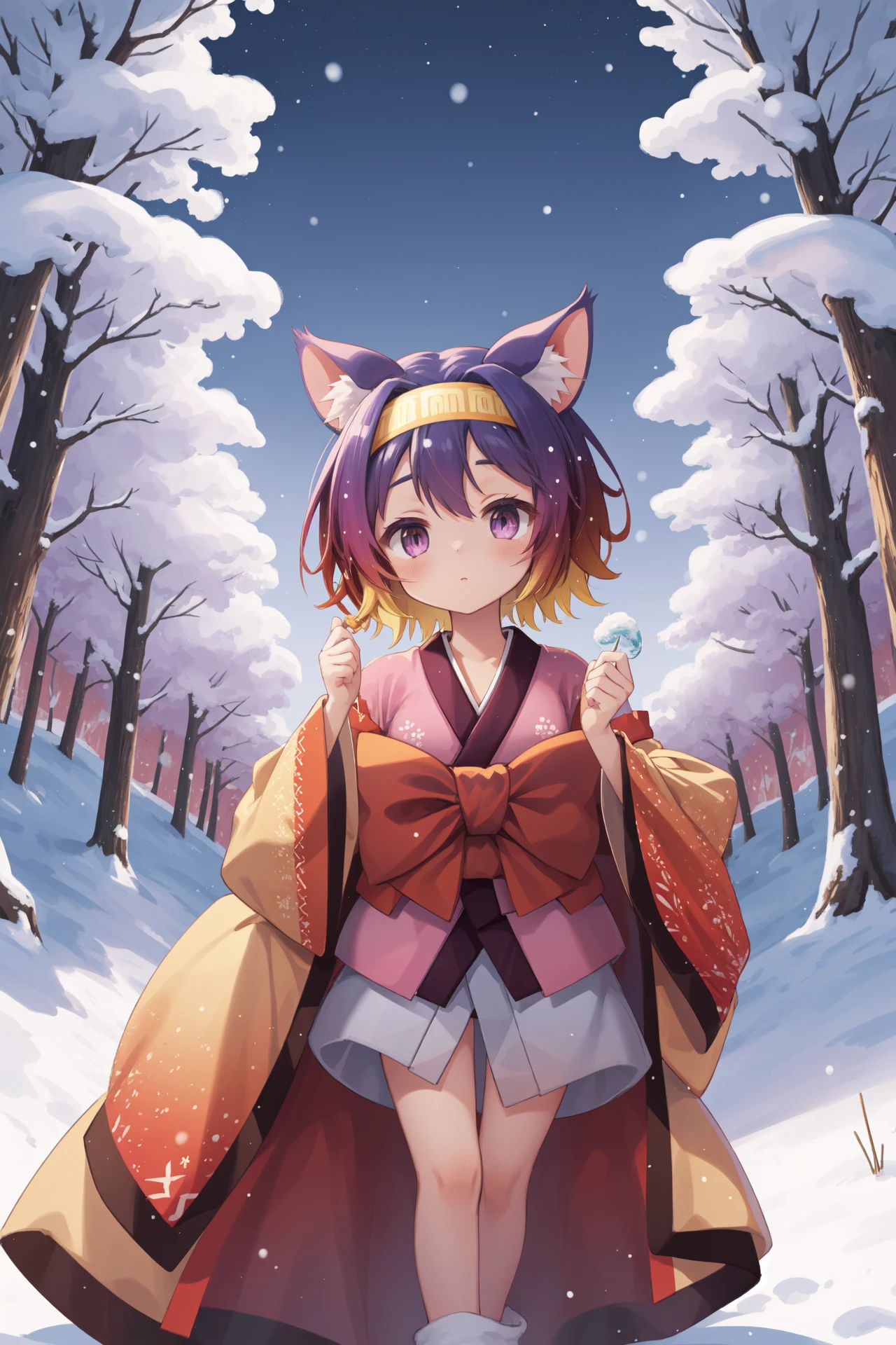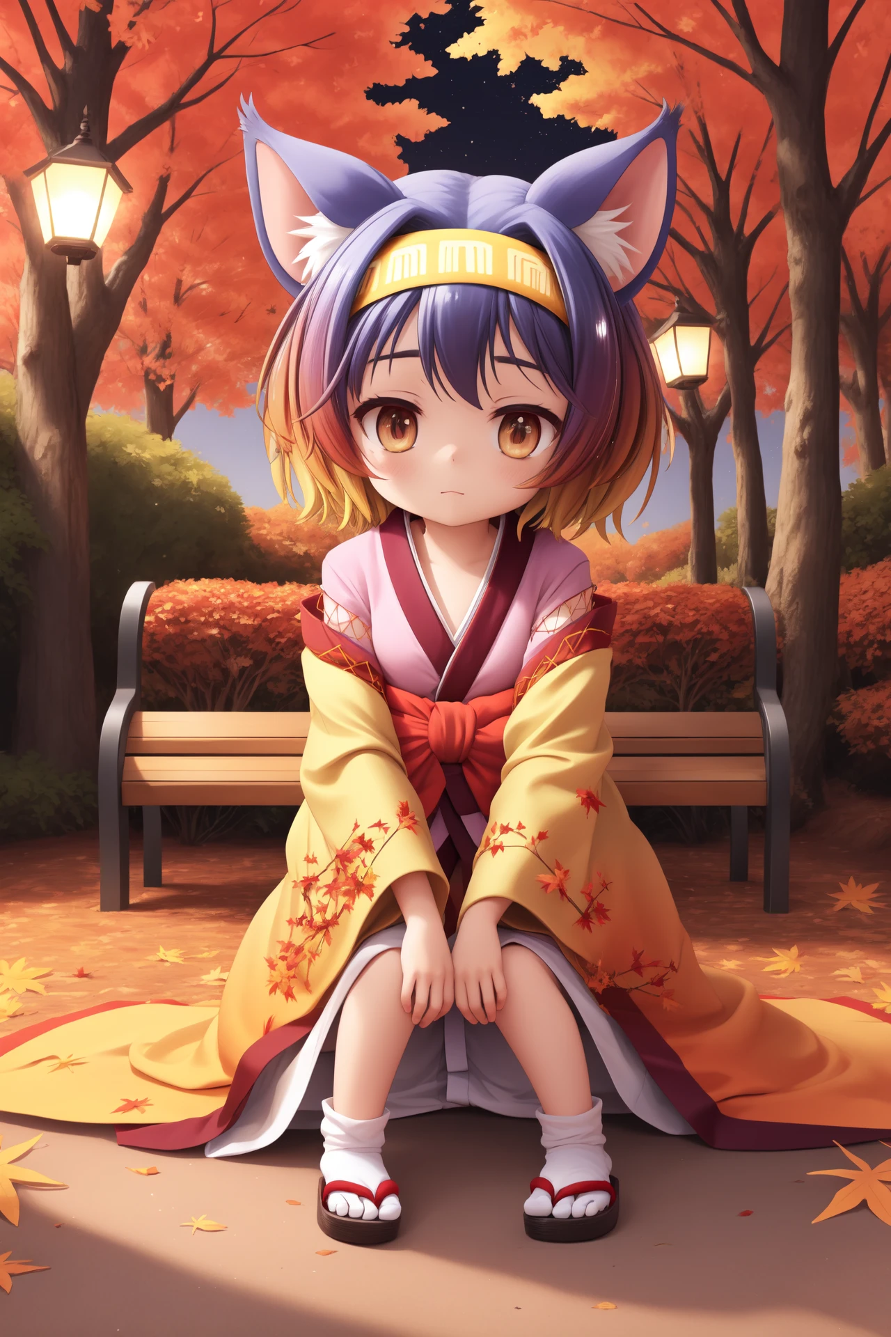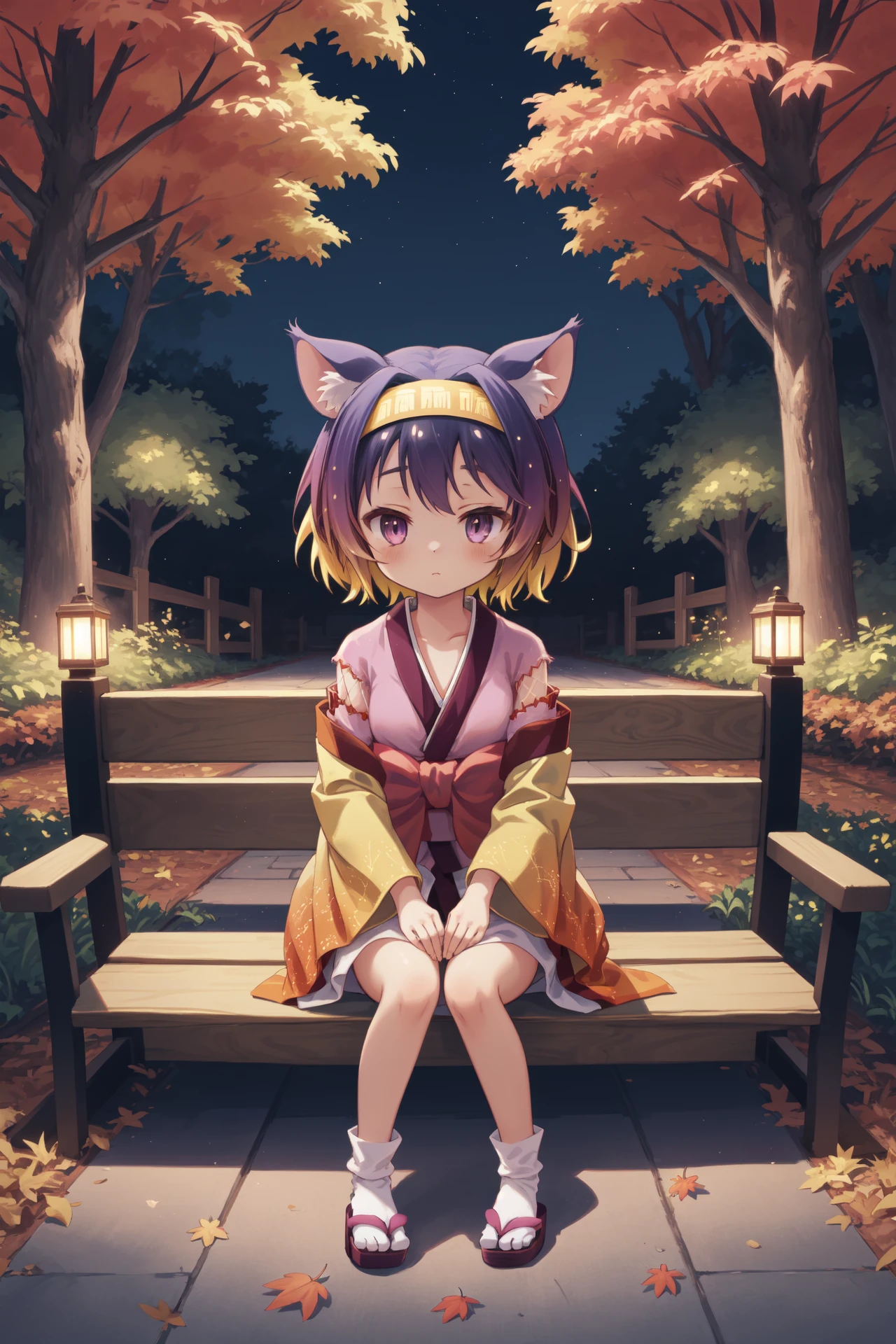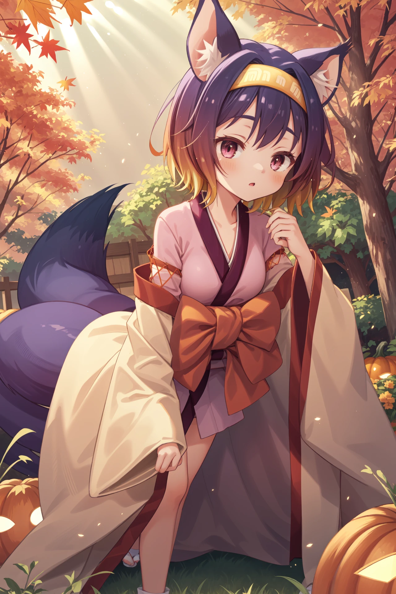 short hair, wide sleeves, sarashi, yellow hairband, tabi, short kimono, gradient hair, 1girl