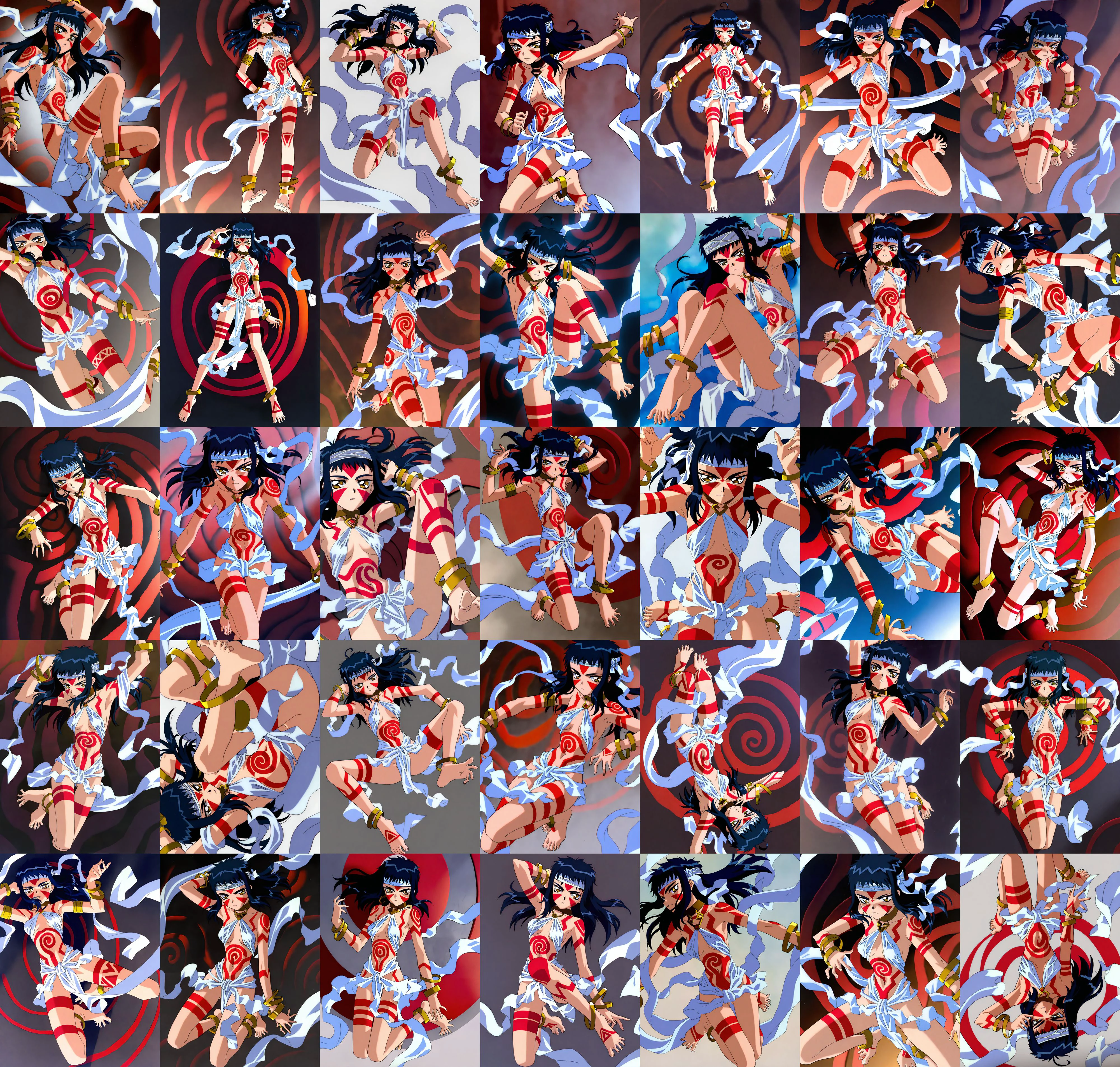 low quality, bad ???????, censored, text, bad hands, bad feet, 6toes, extra toes, 4toes, amputee, conjoined twins, siamese twins, buried lower body, missing lower body, (multicolored hair1.2), (full body), blue skin, red skin, white border, tape on forehead, spread ?????, simple background, geometric pattern, short legs, short tight,