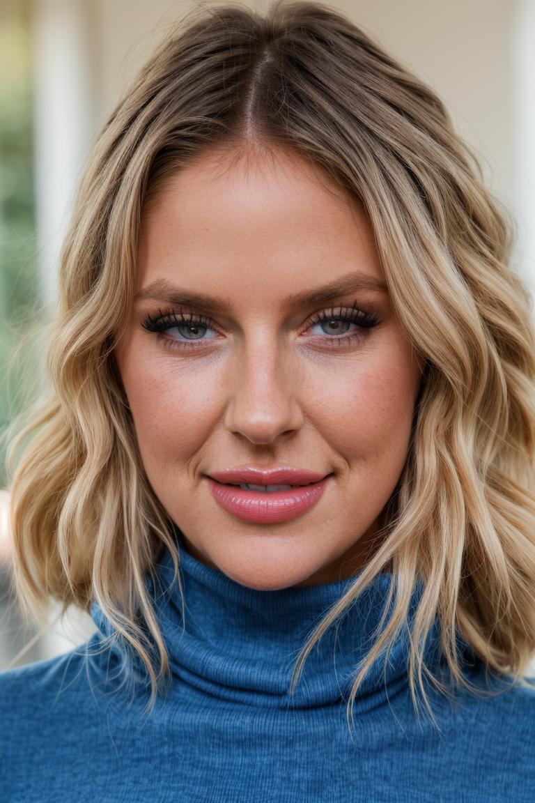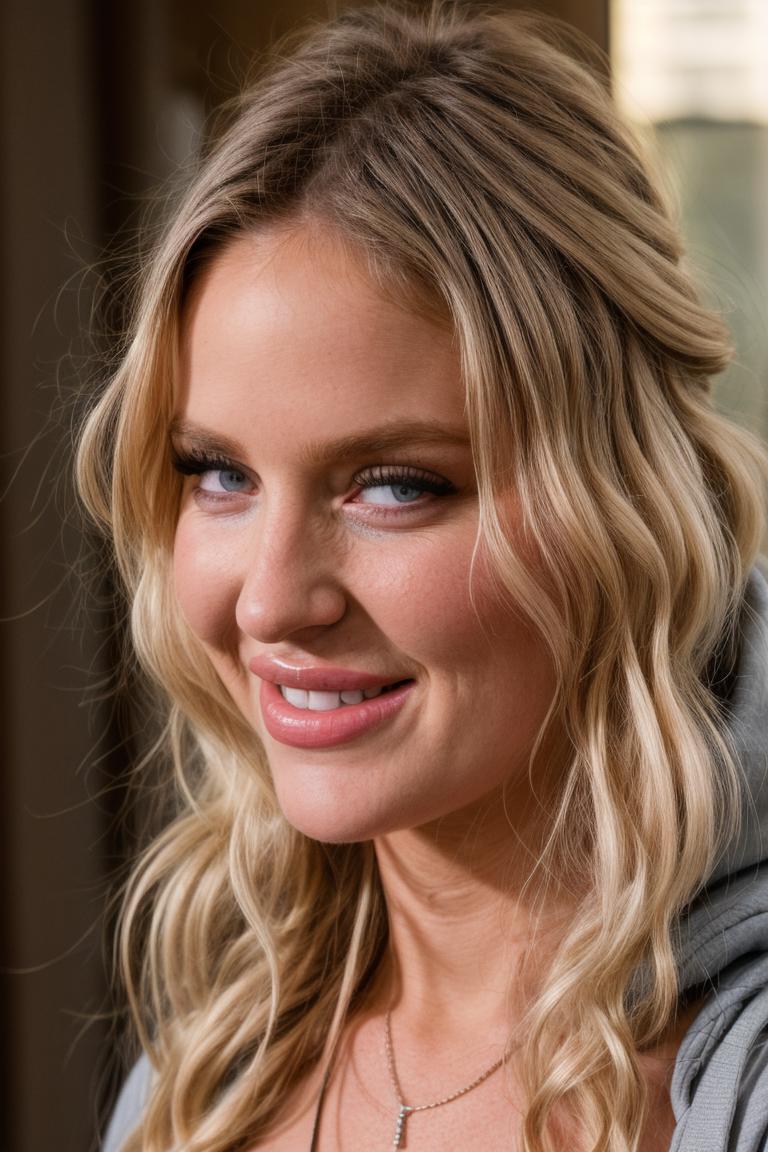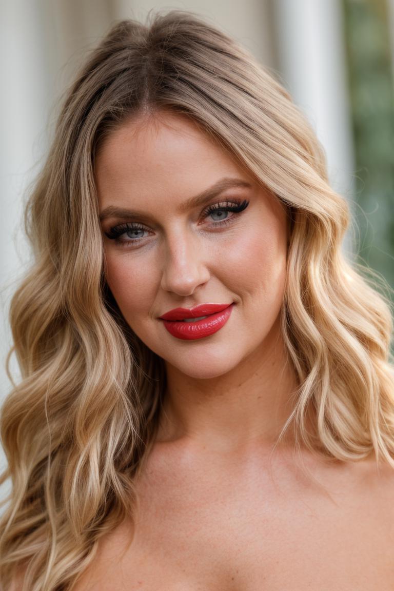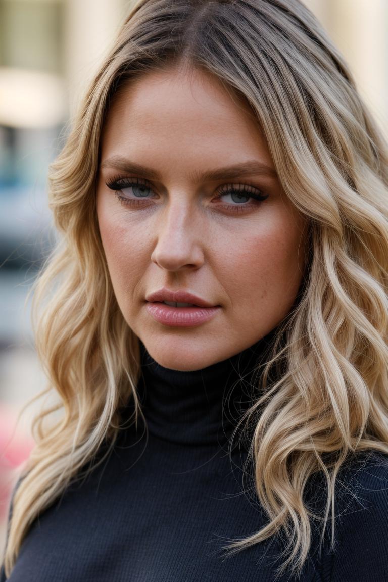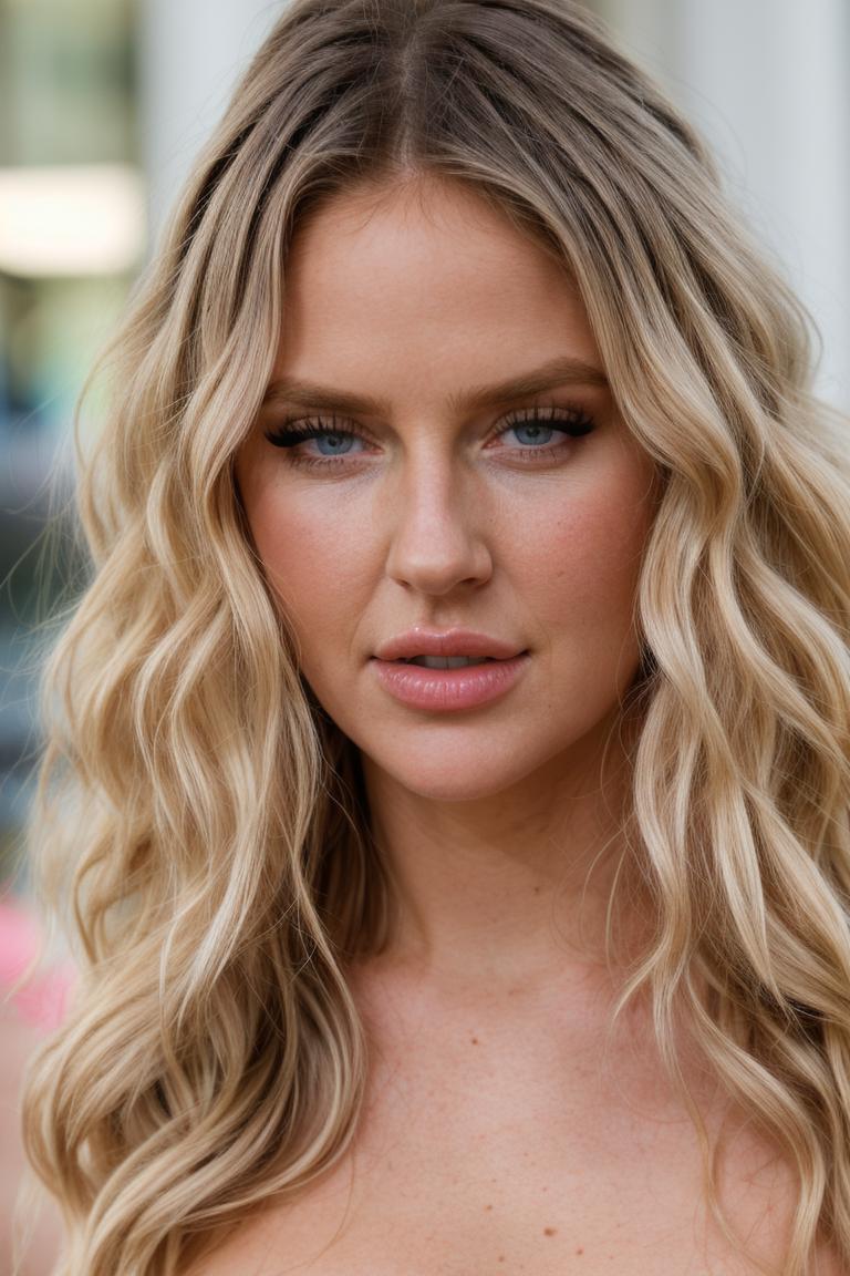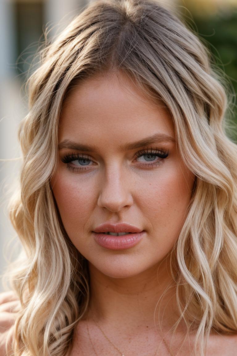Flaunting her fabulous blonde locks and enchanting green eyes, she stands tall at 5'7", carrying her 180 lbs with the grace of a goddess. With body measurements that read like a sculptor's dream (41-30-50), she's proudly rocking a 34DDD, all-natural since waving goodbye to implants.