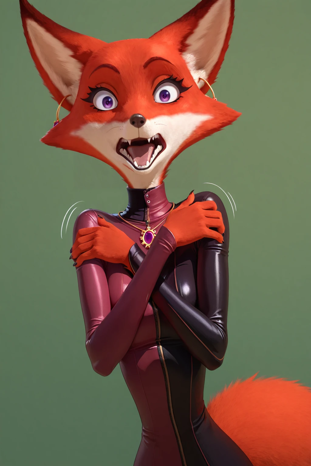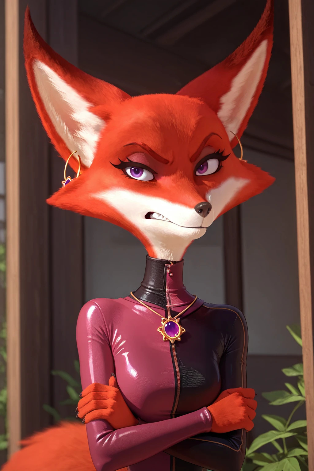 fitna, catsuit with thin gold piping, gold earrings, sun-shaped pendant
