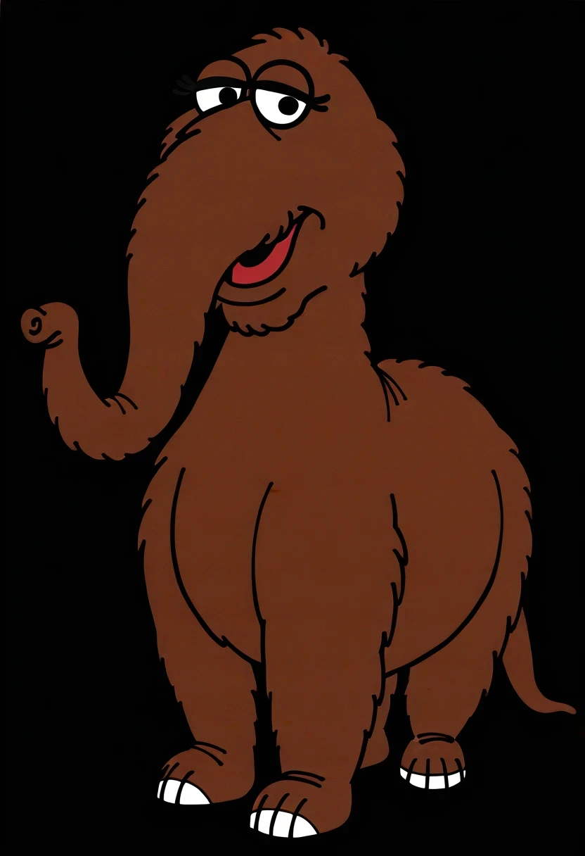 MrSnuffleupagusSS, 1boy, elephant, large brown shaggy fur, with big friendly black eyes, long trunk, big black eyelashes, light brown eyelids,