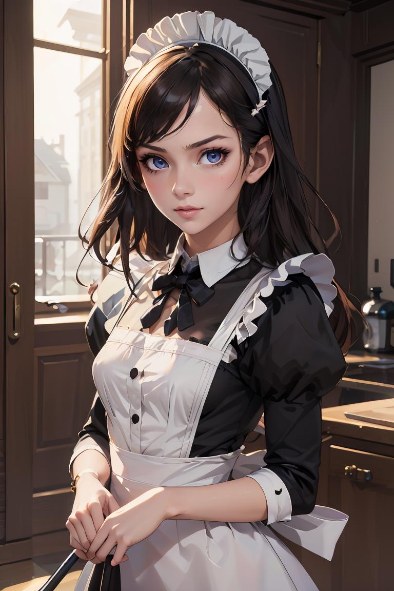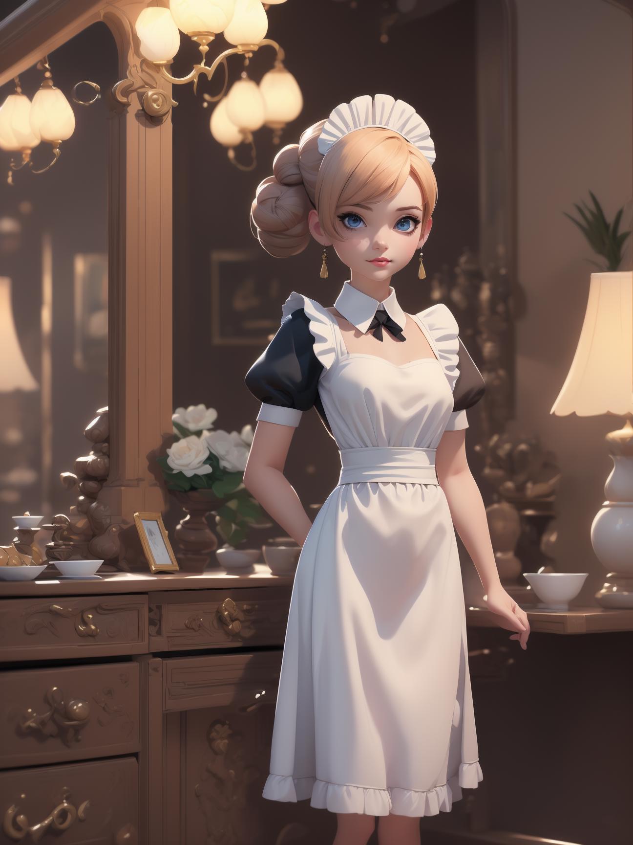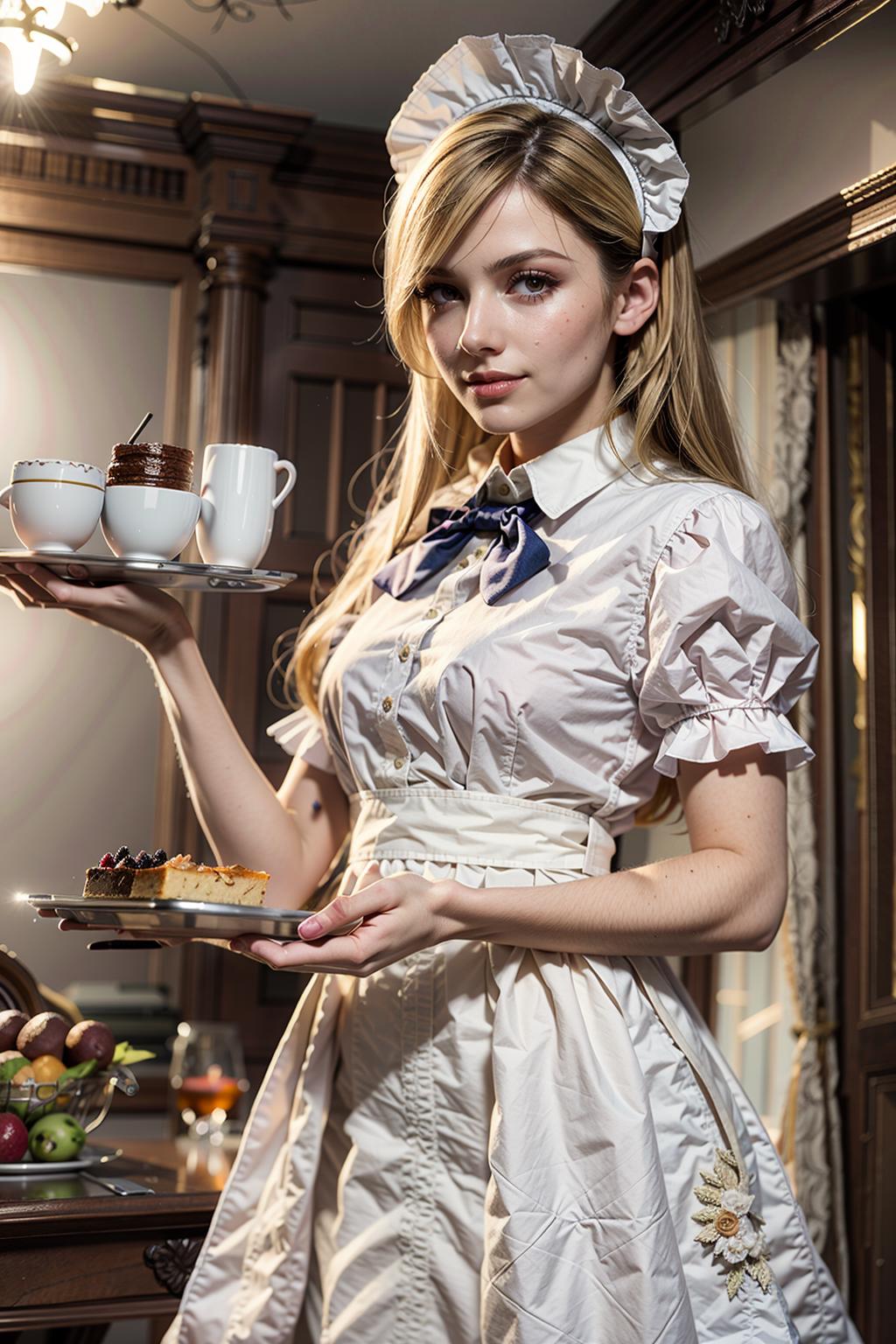 Long, functional aprons feature prominently on this style, but it is not entirely bereft of appeal with puffy sleeves and beautiful brooches, bows and frills. Colors other than black are rare, but not unheard of.