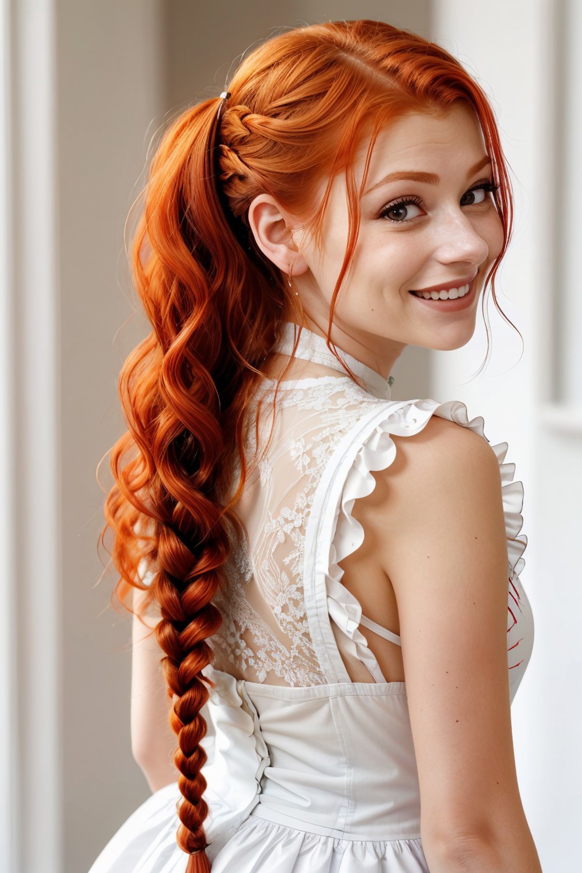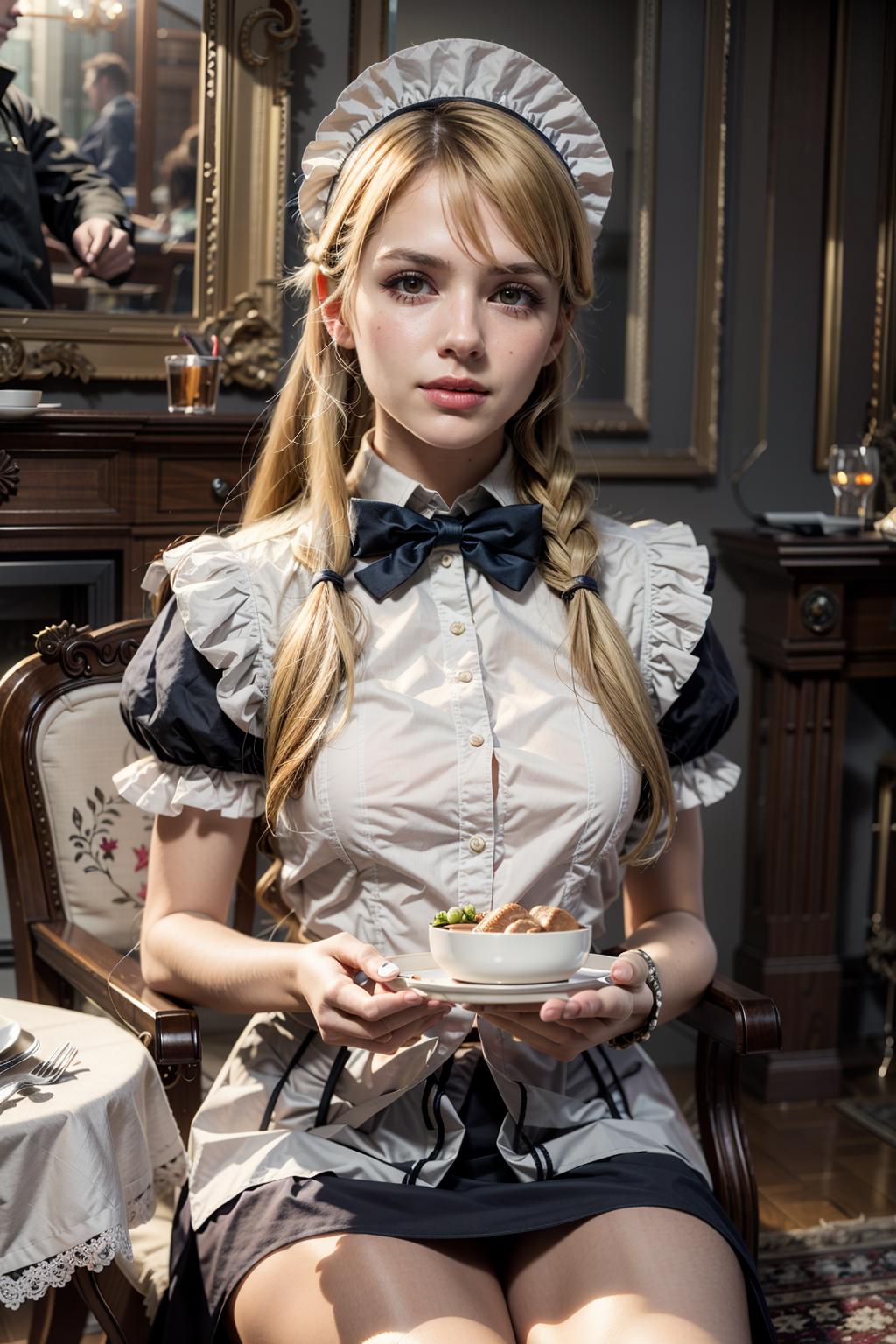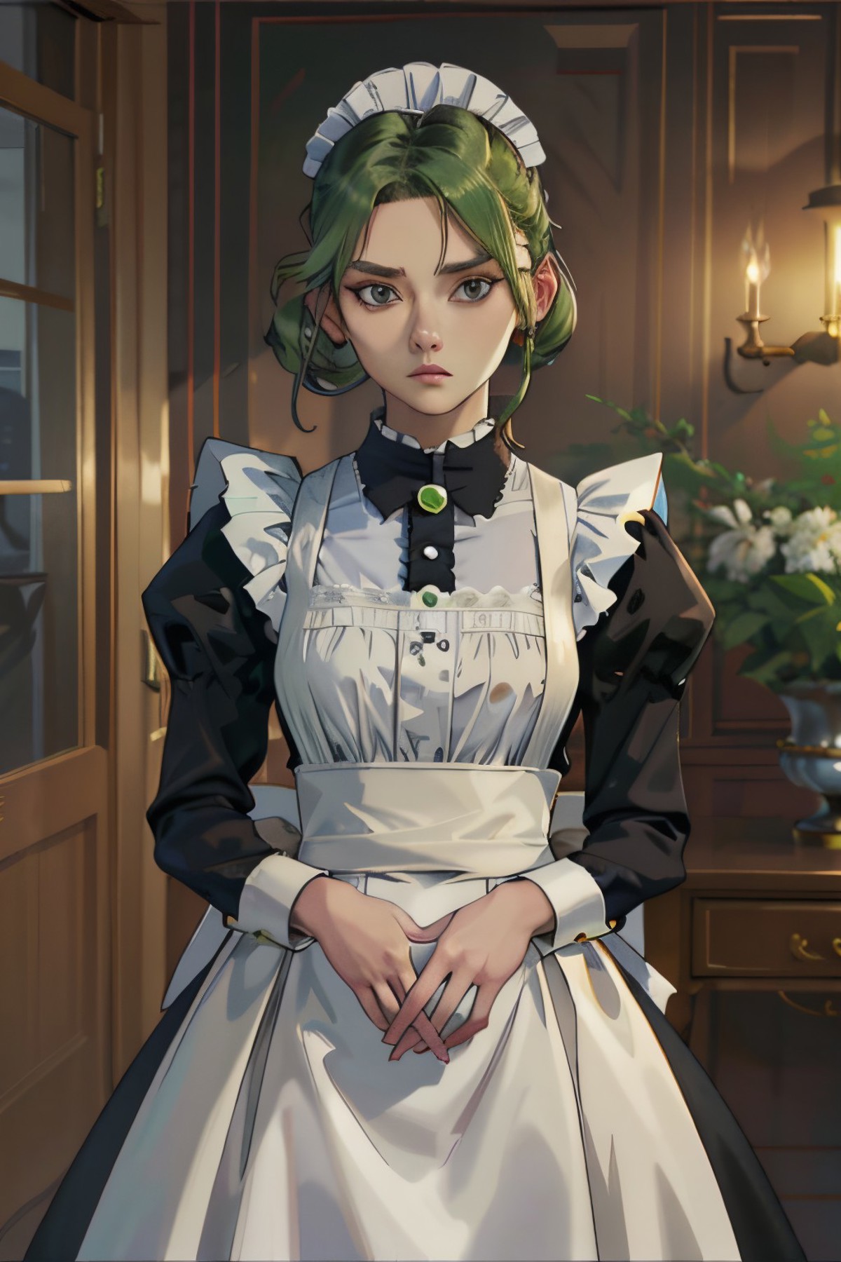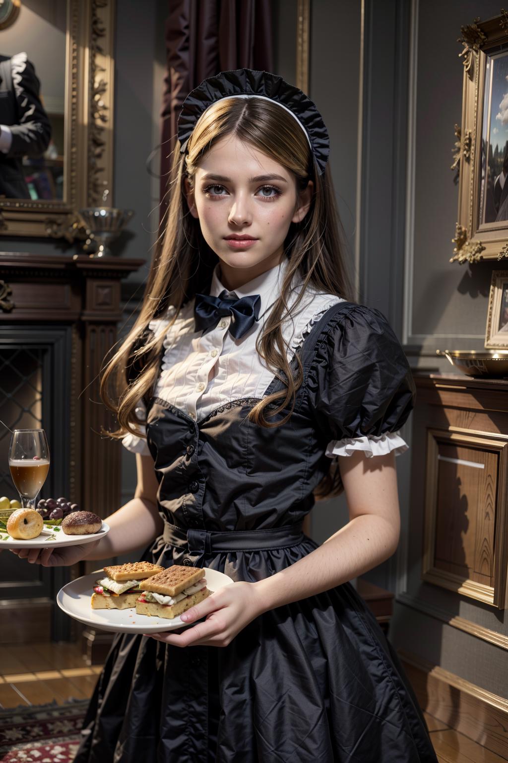 Long, functional aprons feature prominently on this style, but it is not entirely bereft of appeal with puffy sleeves and beautiful brooches, bows and frills. Colors other than black are rare, but not unheard of.