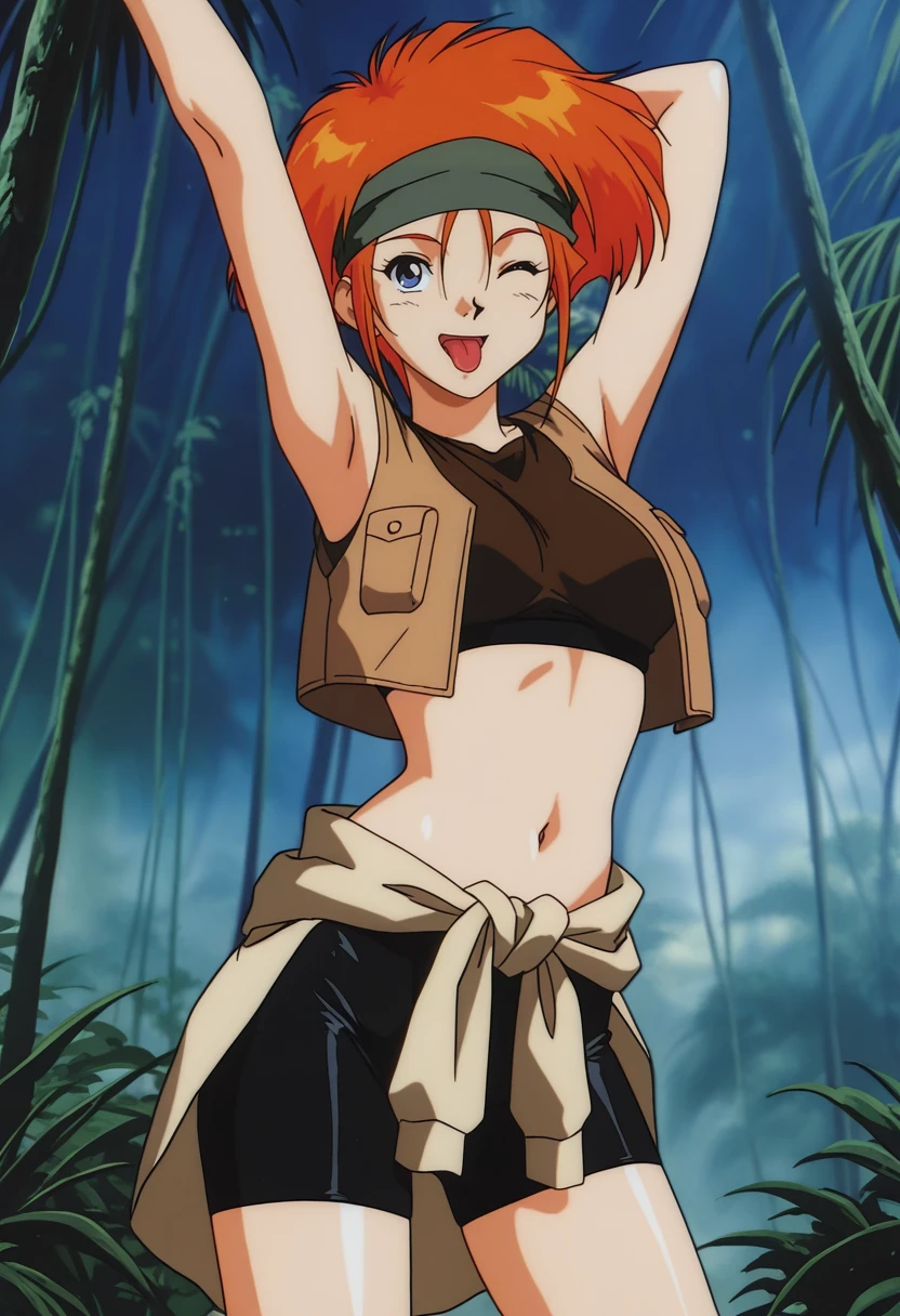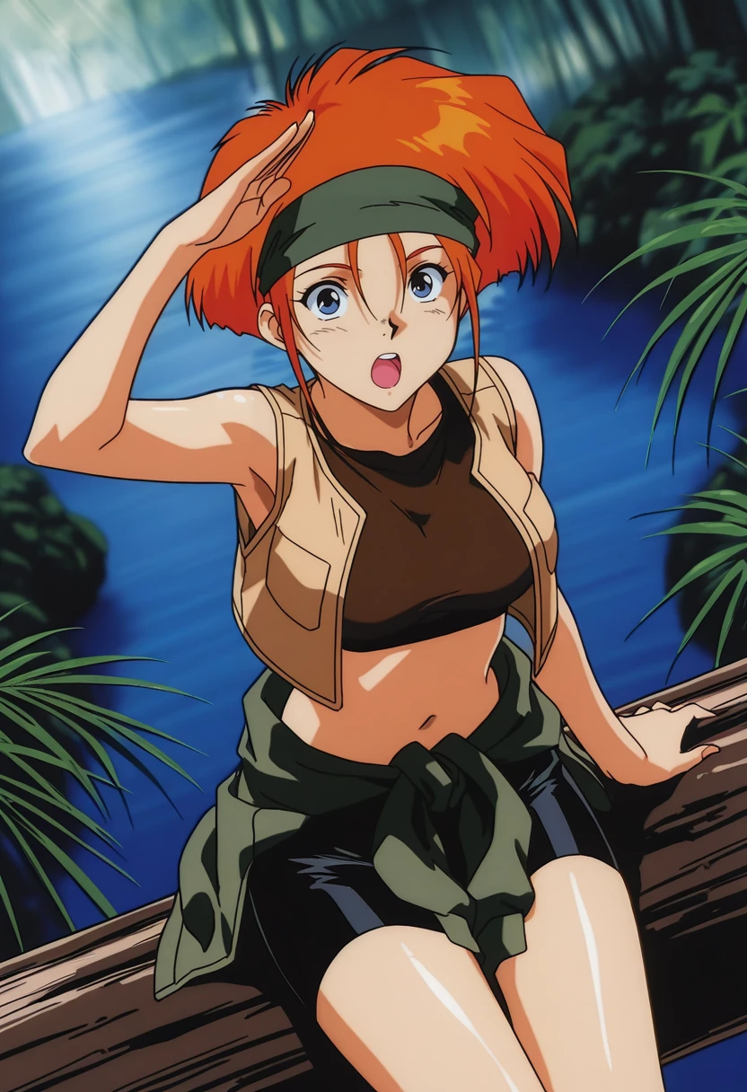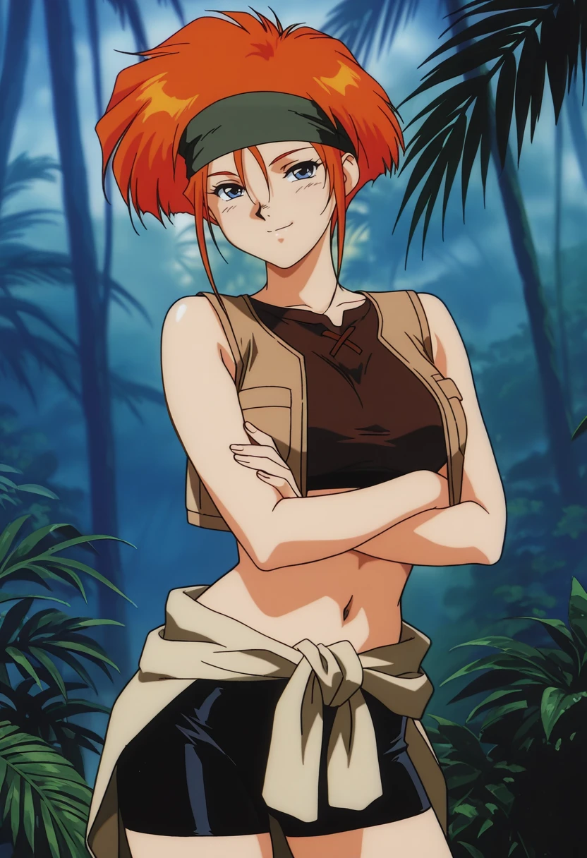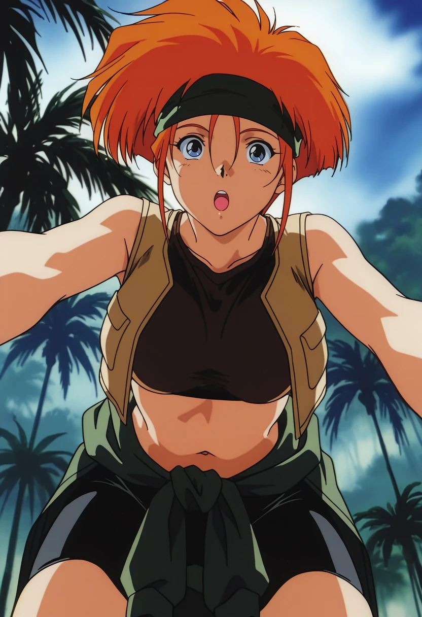 Kiki_Rosita, 1girl, solo, orange hair, short hair, blue eyes, medium breast, curvy, large hips,Guerrilla Outfit: