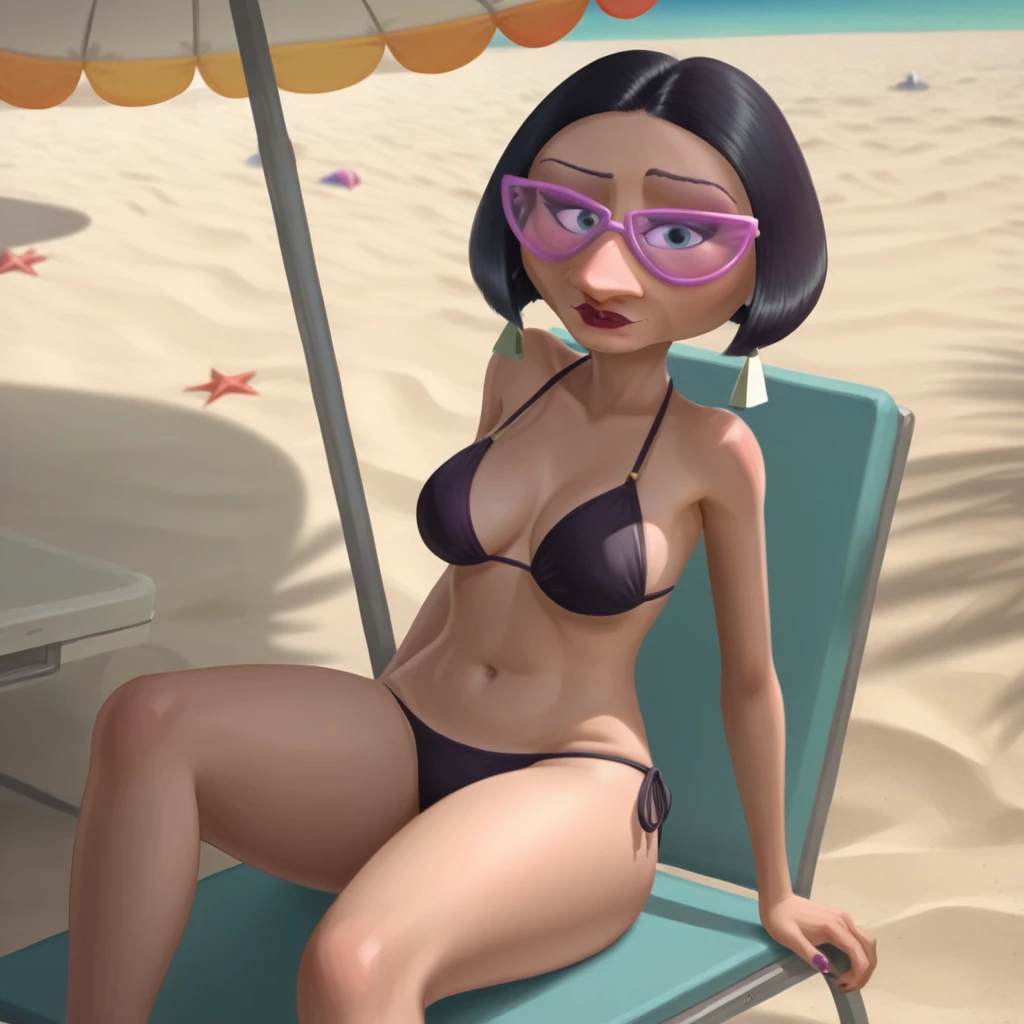 MRS_EAMES, 1girl, solo, short hair, black hair, blue eyes, lipstick,