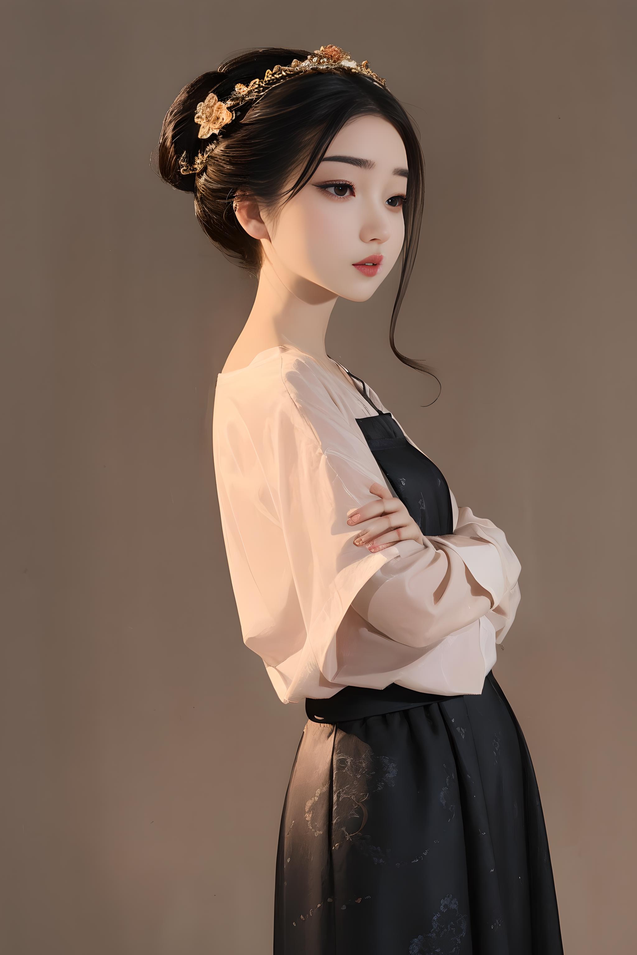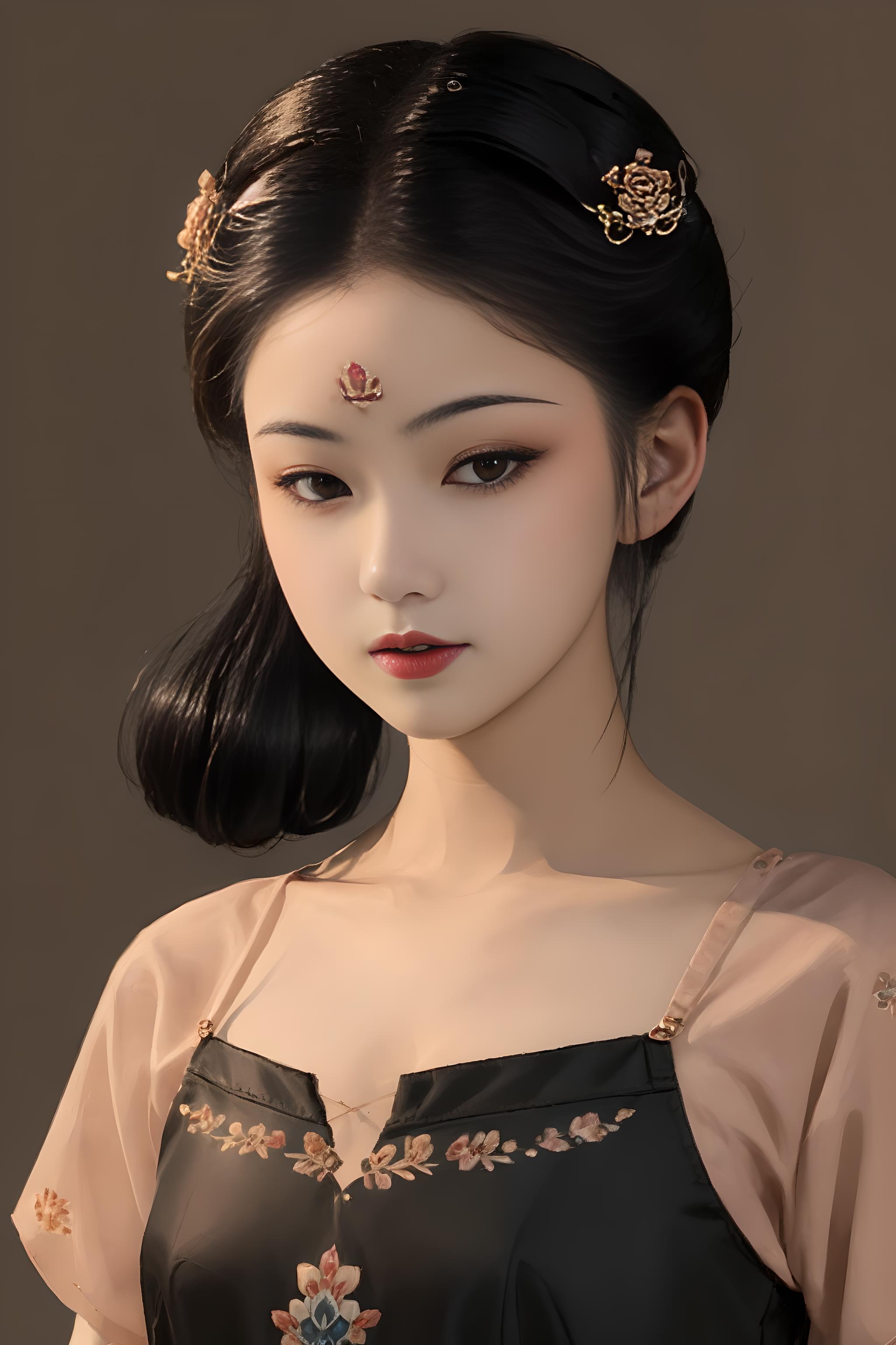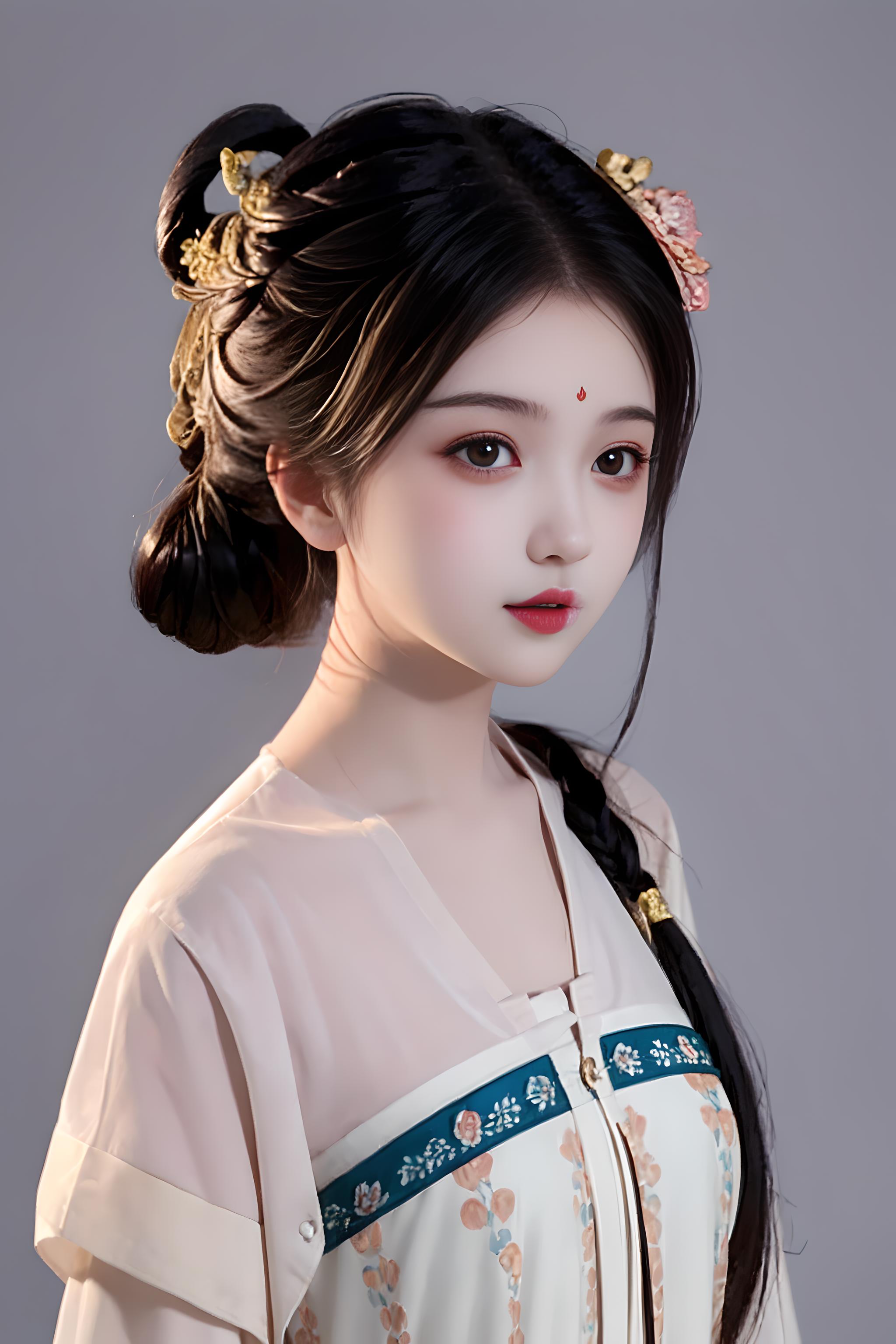 常用提示词:CGhanfutangswa, 1girl, solo, jewelry, black hair, white background, necklace, closed eyes, hair ornament, full body, updo, simple background, long sleeves, shawl, standing, red lips, wide sleeves, makeup, hair bun, realistic, facing viewer, lipstick,holding, long sleeves,red lips, hair stick, realistic, wide sleeves, scroll, looking at viewer,flower, black hair, hair ornament, realistic, long sleeves, shoes, shawl, wide sleeves, black eyes, holding flower