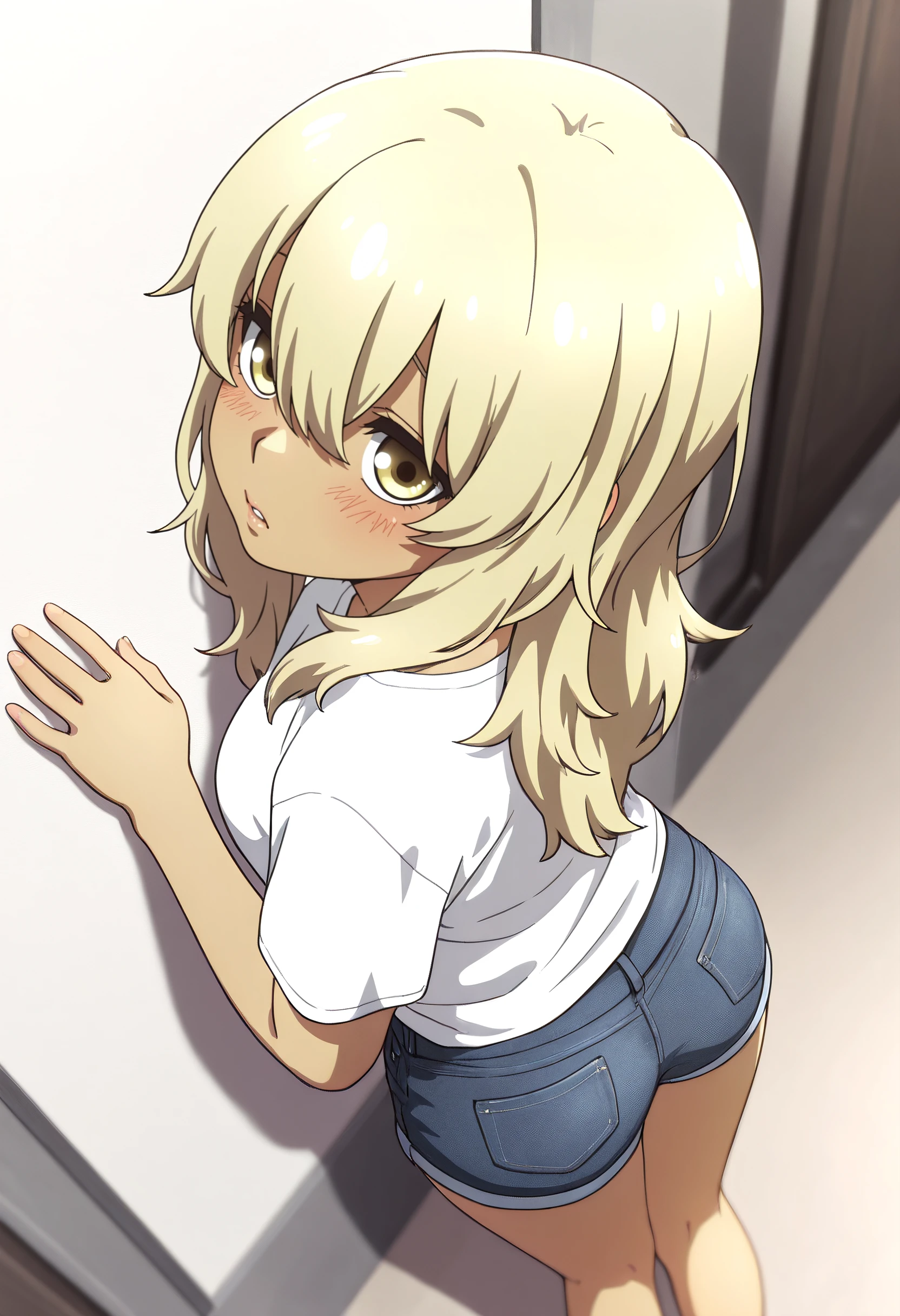 KanaShirt, shirt, white shirt, t-shirt, short sleeves, casual, denim, shorts, blue shorts, denim shorts, short shorts,