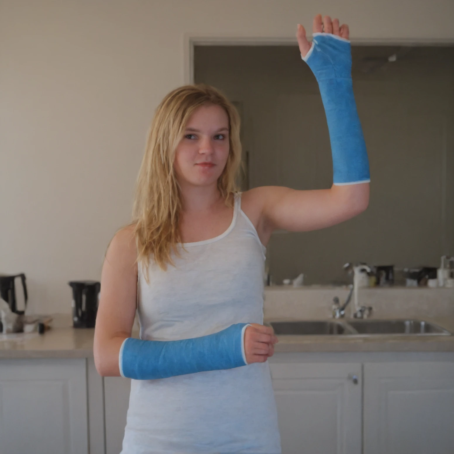 You can use the "rmacast" keyword for an arm cast and "gelcast" for a leg cast. The model has trouble diffentiation between "long" and "short" but it still works somewhat.