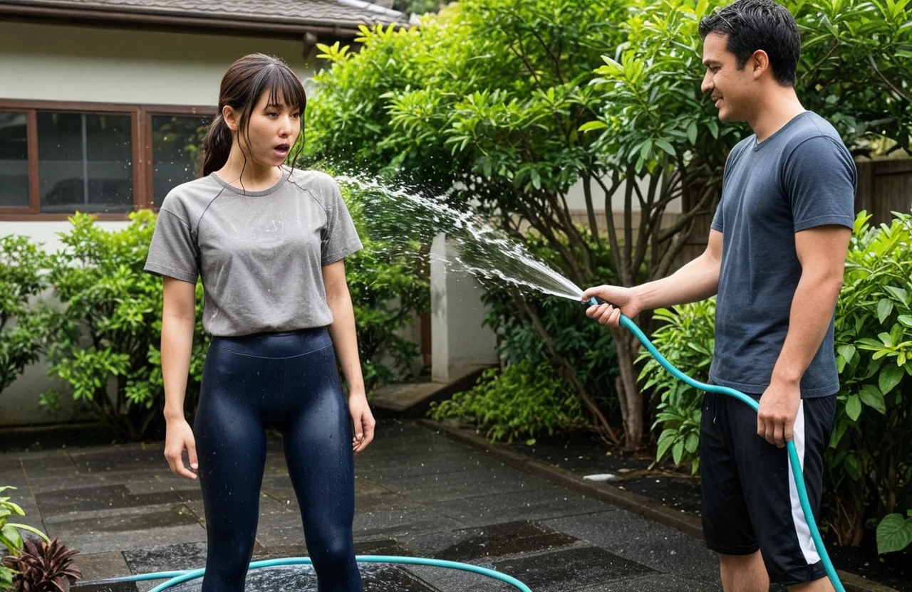hose, water, 1boy holding hose