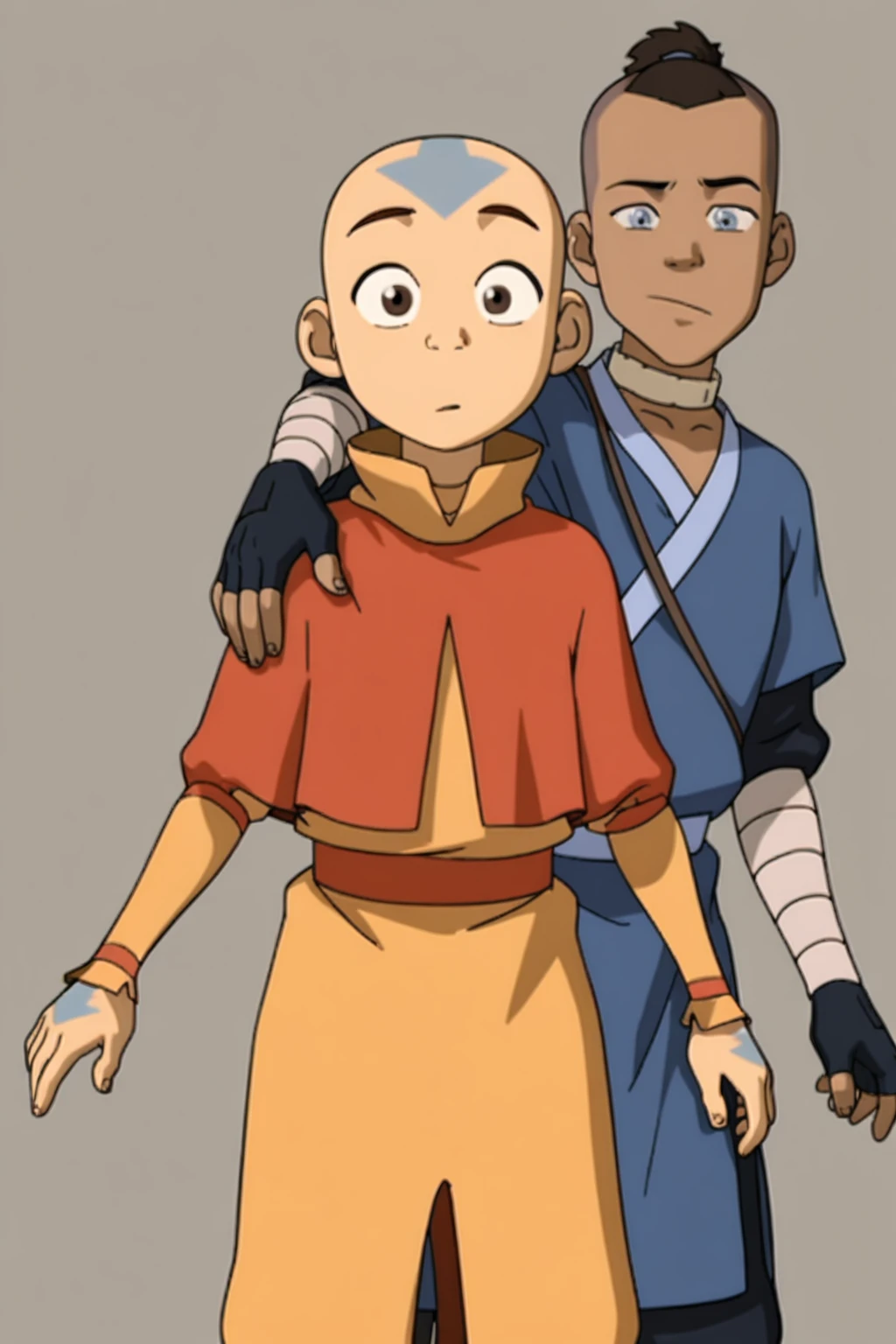Aang and Sokkasimple keywords "aang", "sokka",Most of times Sokka gets some blue tattoes when paired with Aang but other than that gives solid results.