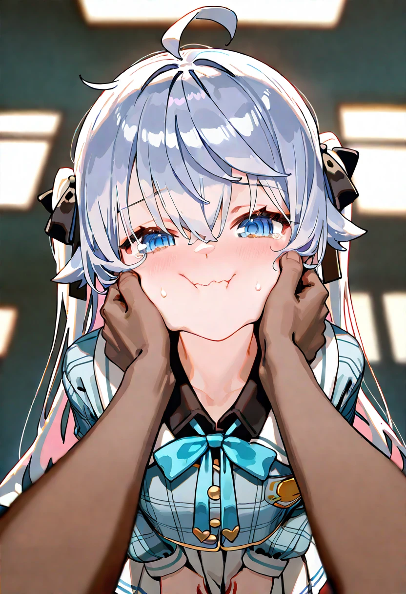 Kagura_Nana,white pleated striped skirt,bule plaid shirt,sailor collar,black undershirt,blue bowtie蓝水手服