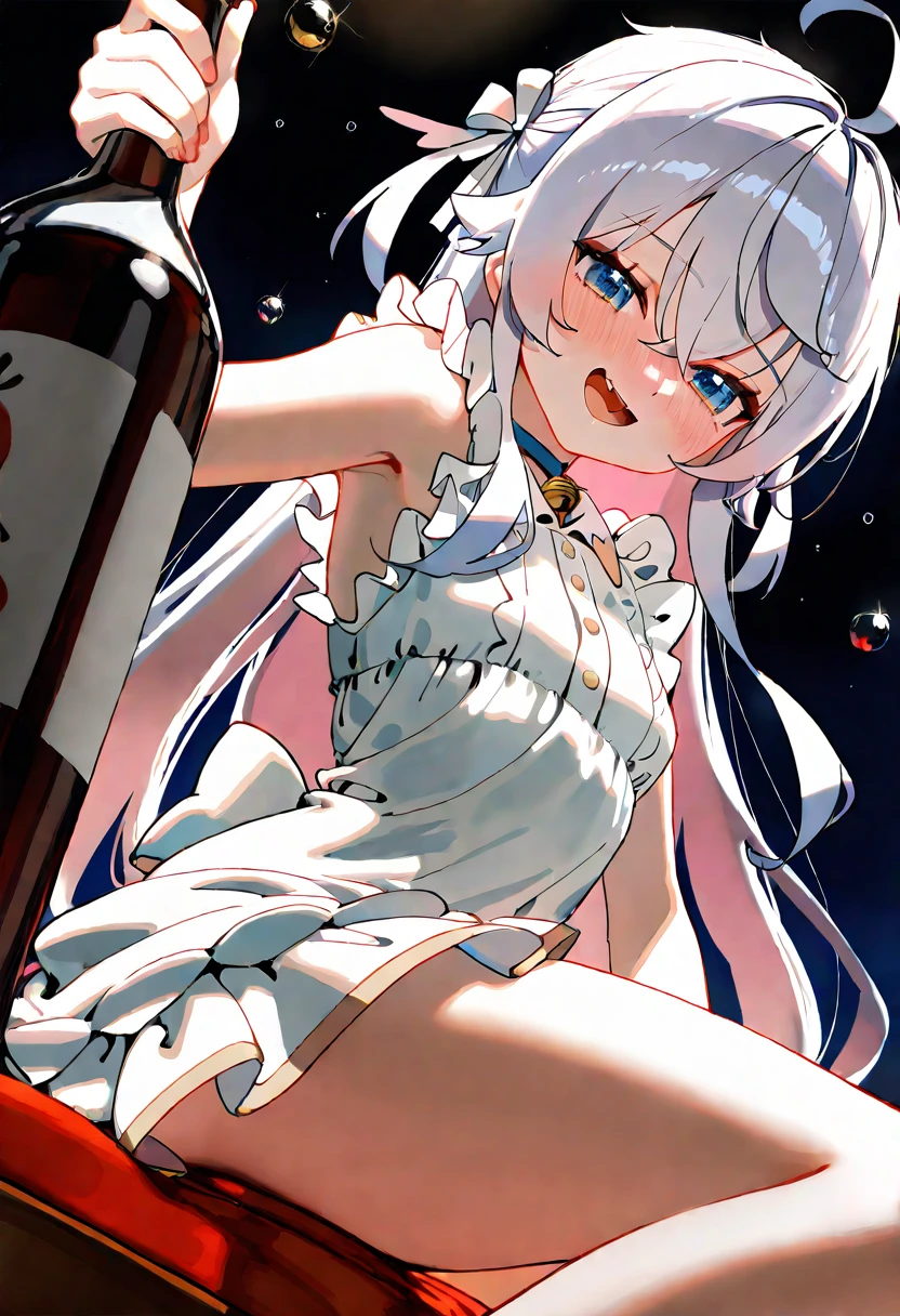 Kagura_Nana,white frilled dress,bare shoulders,thigh strap,neck bell无外套