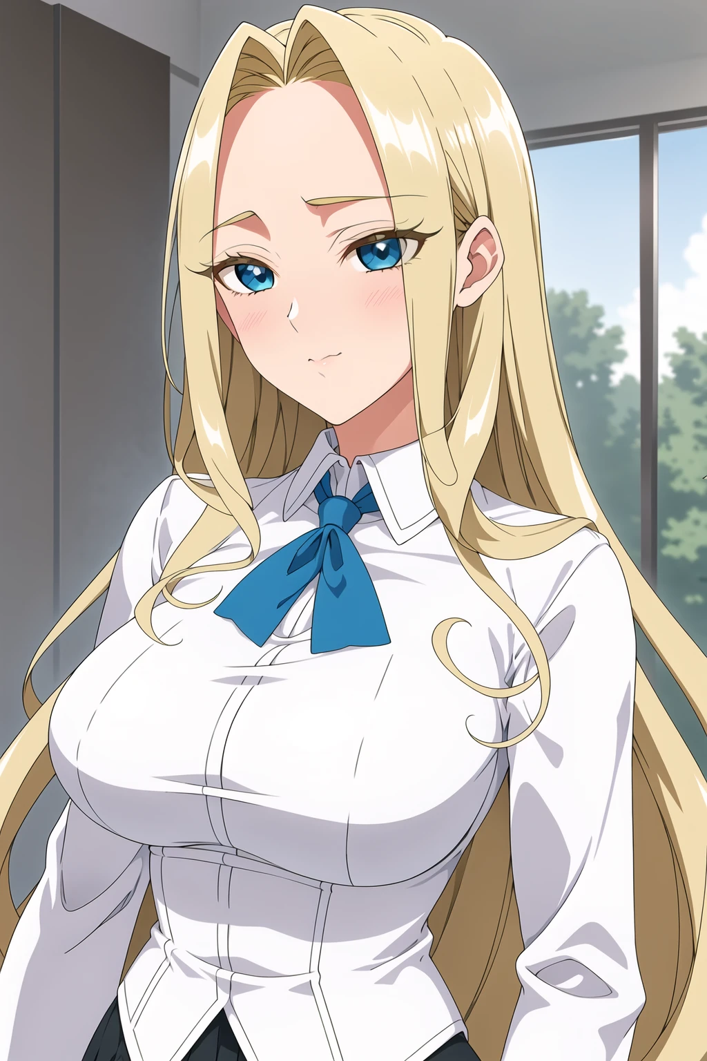 blue eyes, blonde hair,bangs,Long hair,