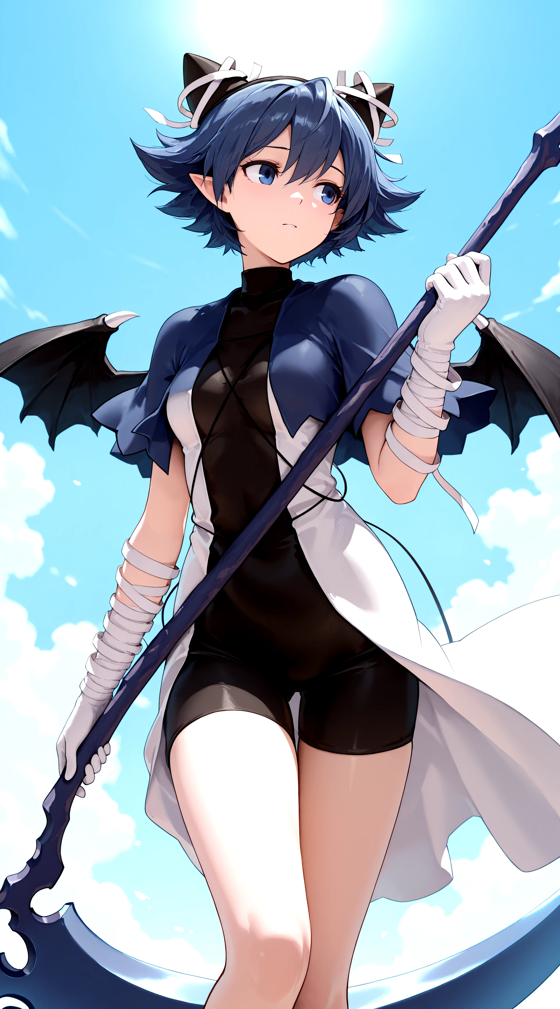 serene_(riviera), arc_dress, fake_ears, wings, bandages, arc_scythe,